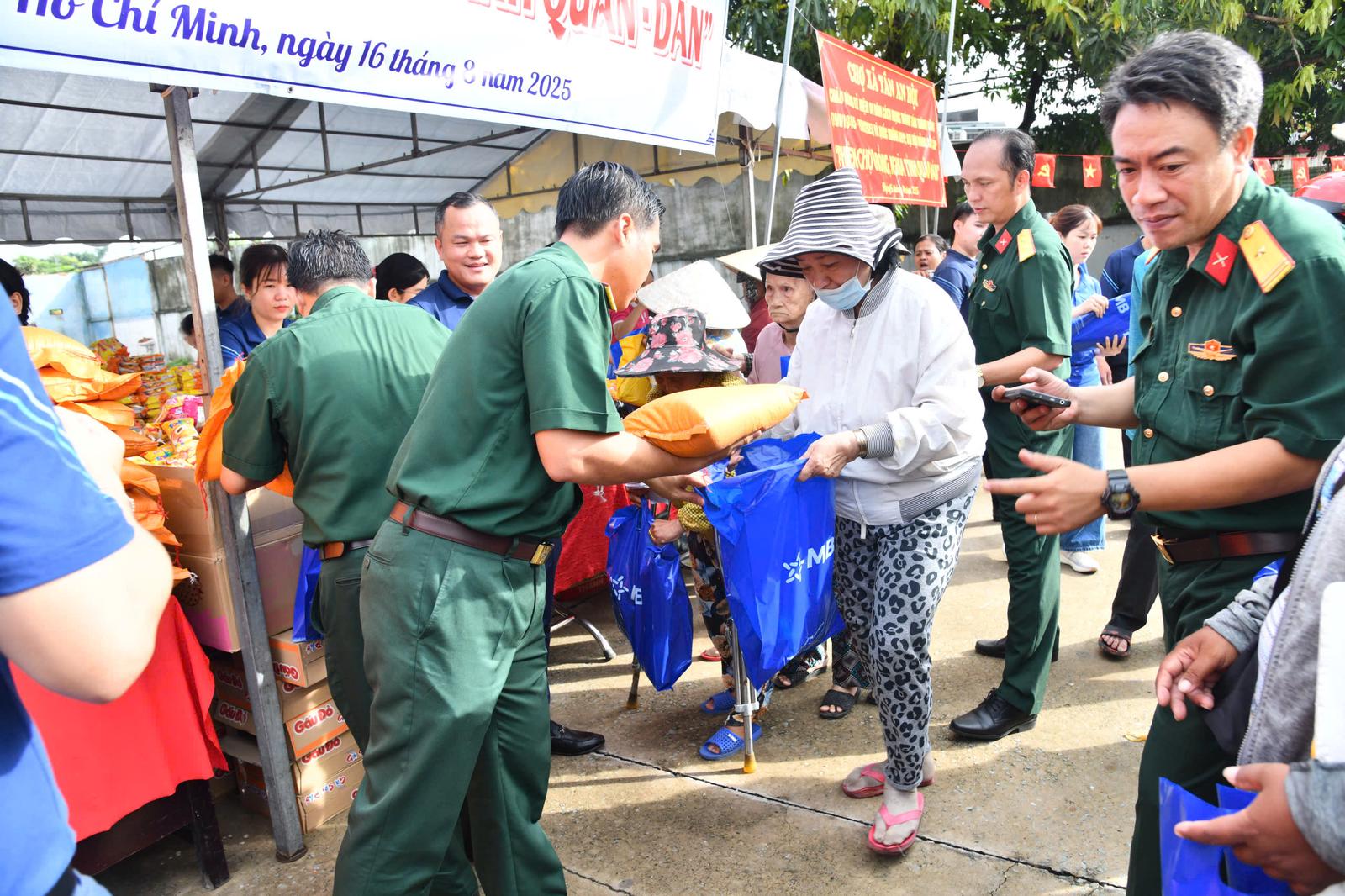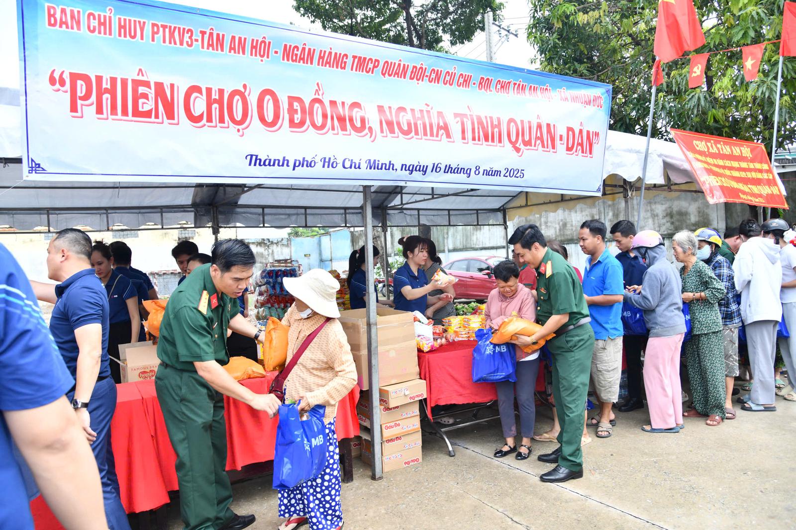 Tại "Phiên chợ 0 đồng, nghĩa tình Quân - Dân", đã tổ chức 6 gian hàng trao tặng 600 phần hàng hóa, lương thực, thực phẩm gồm: Gạo, rau, củ, quả, đường, dầu ăn, nước mắm, bột ngọt, hạt nêm và các nhu yếu phẩm khác cho các đối tượng chính sách, công nhân, nhân dân lao động có hoàn cảnh khó khăn trên địa bàn. Bên cạnh đó Ngân hàng TMCP Quân đội chi nhánh Củ Chi tổ chức tư vấn mở tài khoản, làm thẻ ngân hàng, tặng mũ bảo hiểm và các dịch vụ tiện ích của ngân hàng. Phiên chợ tạo sức lan toả mạnh mẽ trong thực hiện phong trào "Chung tay vì người nghèo - Không ai bị bỏ lại phía sau".