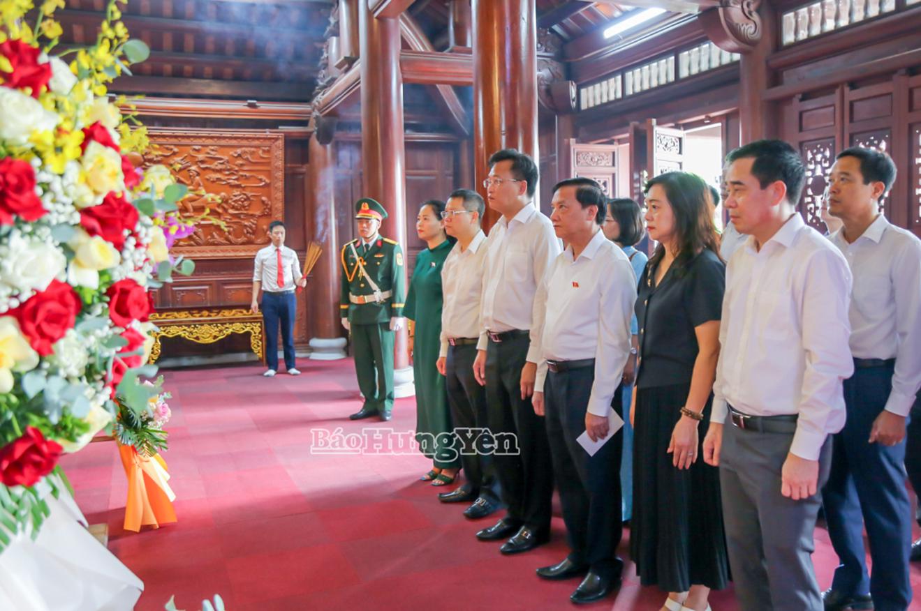 Đồng chí Nguyễn Khắc Định và các đại biểu dâng hương tưởng niệm Chủ tịch Hồ Chí Minh tại Đền thờ Bác Hồ, phường Trà Lý. Ảnh: Báo Hưng Yên