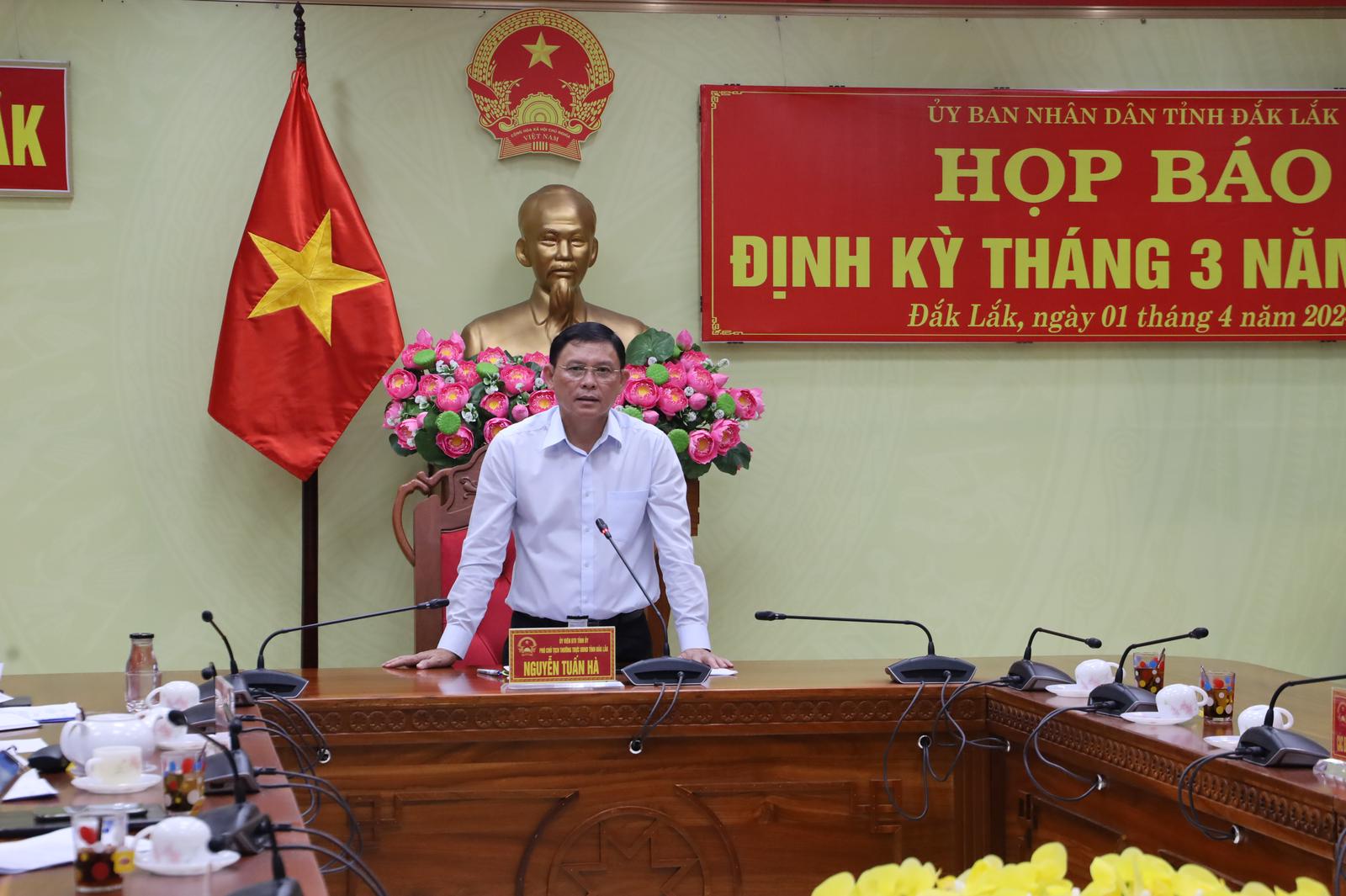 Ông Nguyễn Tuấn Hà - Phó Chủ tịch Thường trực UBND tỉnh Đắk Lắk phát biểu tại buổi họp báo. Ảnh: MH
