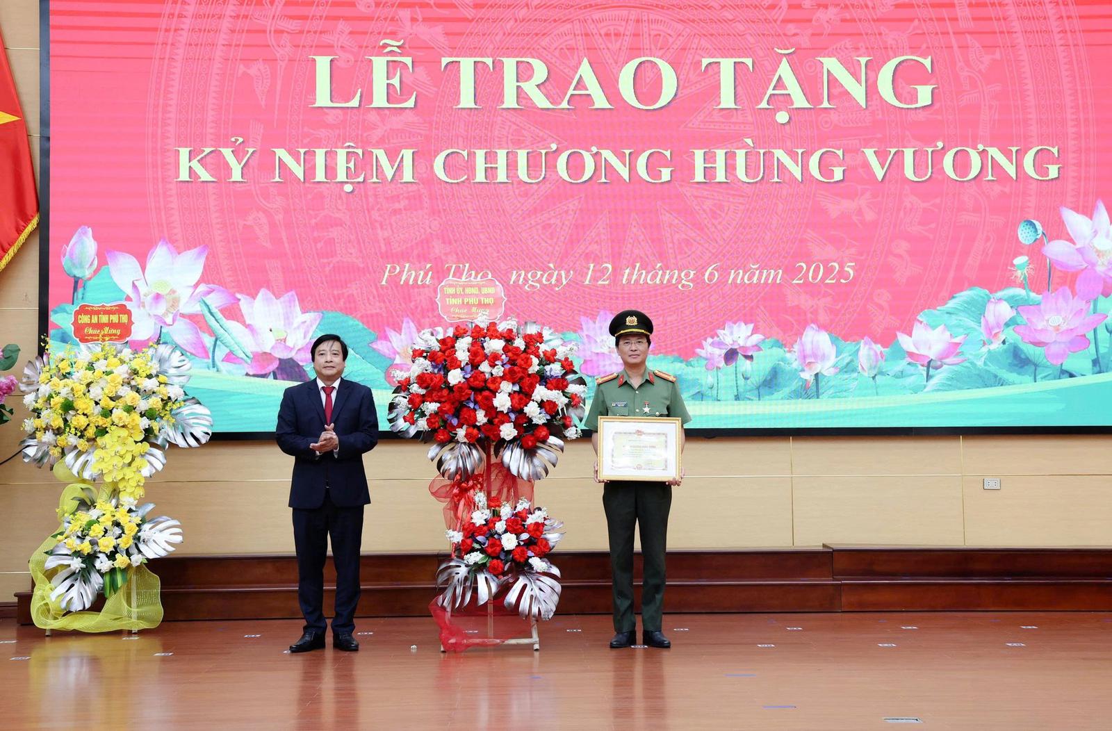 Trước đó, ông Nguyễn Mạnh Sơn, Uỷ viên Ban Thường vụ Tỉnh ủy, Phó Chủ tịch UBND tỉnh Phú Thọ đã trao tặng Kỷ niệm chương Hùng Vương - phần thưởng cao quý của tỉnh Phú Thọ cho Đại tá Nguyễn Quốc Vương, Phó Cục trưởng Cục Tổ chức cán bộ, nguyên là Phó Giám đốc Công an tỉnh Phú Thọ.