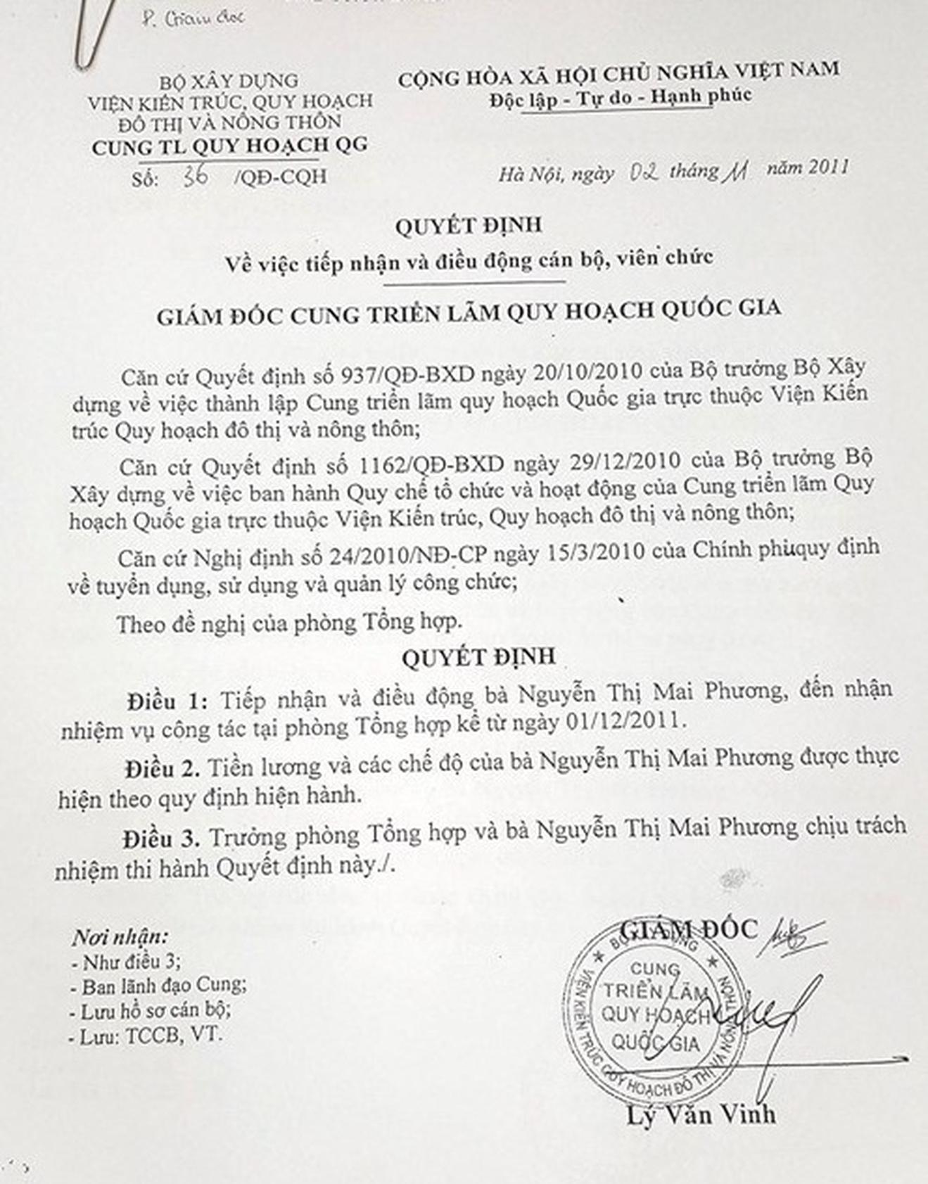 Từ ngày 1/12/2011, bà Nguyễn Thị Mai Phương được nhận về làm việc tại Phòng Tổng hợp, Cung Triển lãm Quy hoạch Quốc gia. (Ảnh: GDVN)