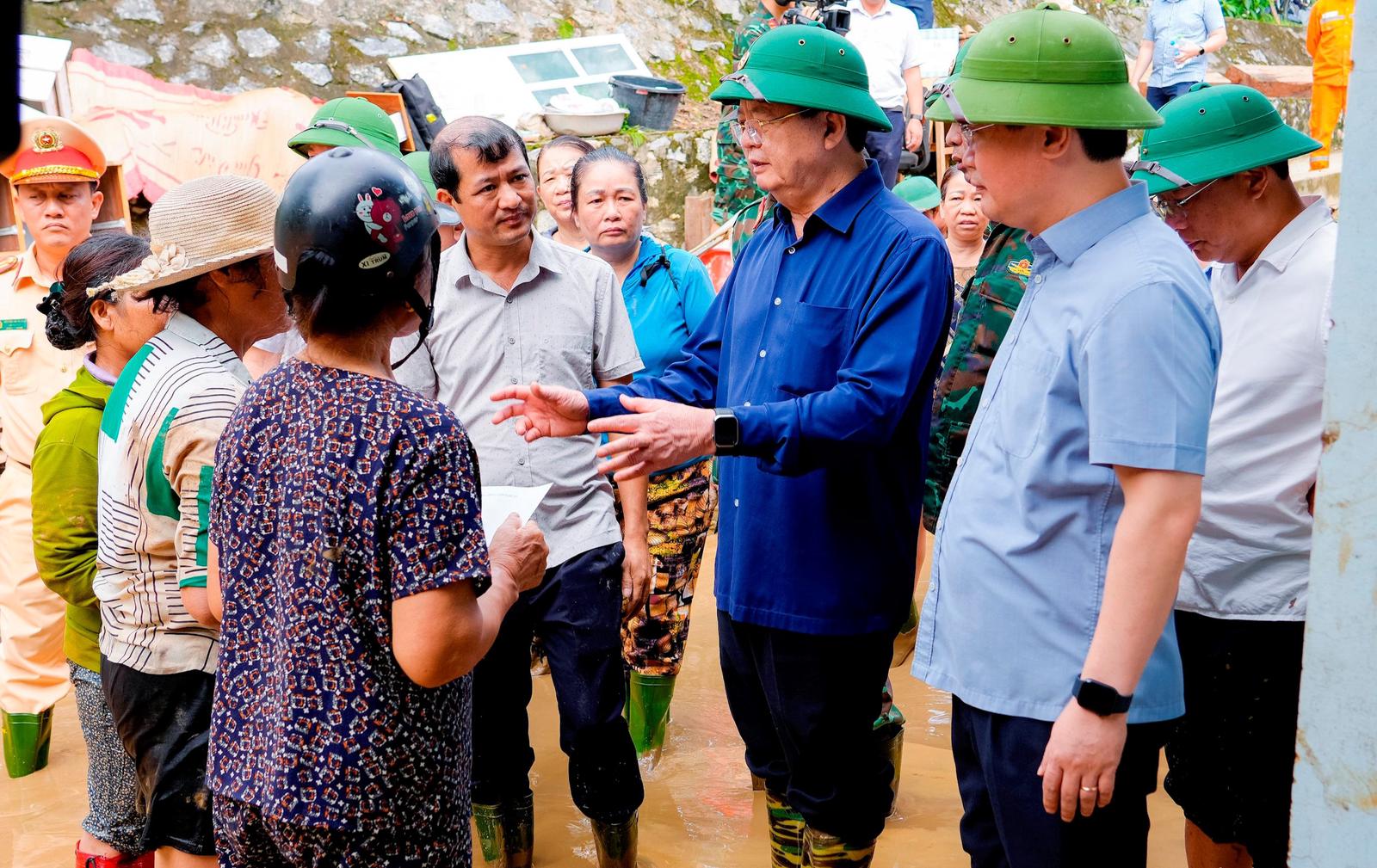 Phó Thủ tướng Mai Văn Chính động viên và chia sẻ cùng đồng bào vùng lũ Nghệ An. Ảnh: Phạm Bằng