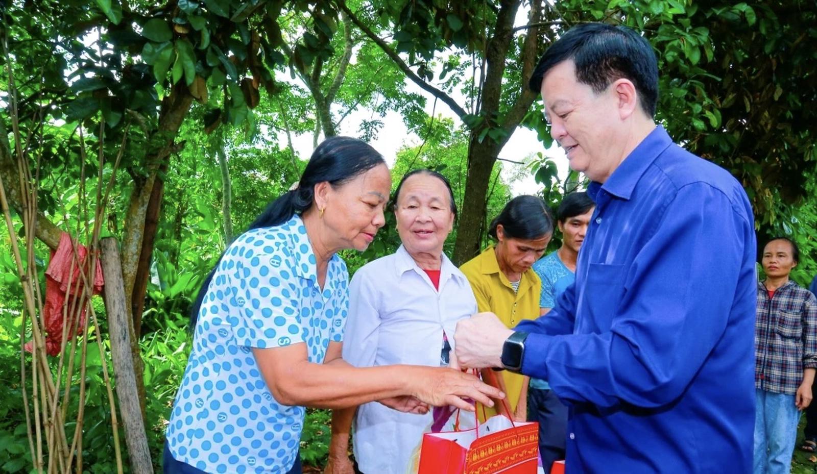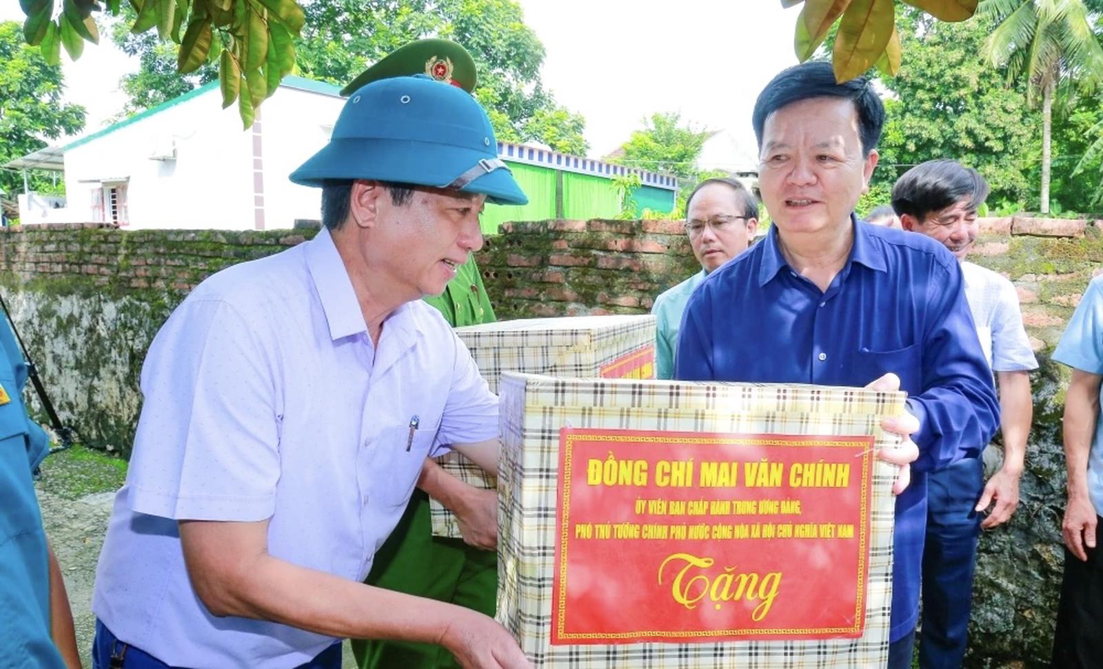 Phó Thủ tướng Chính phủ Mai Văn Chính tặng quà các lực lượng phòng, chống thiên tai xã Cẩm Tú. Ảnh: LH