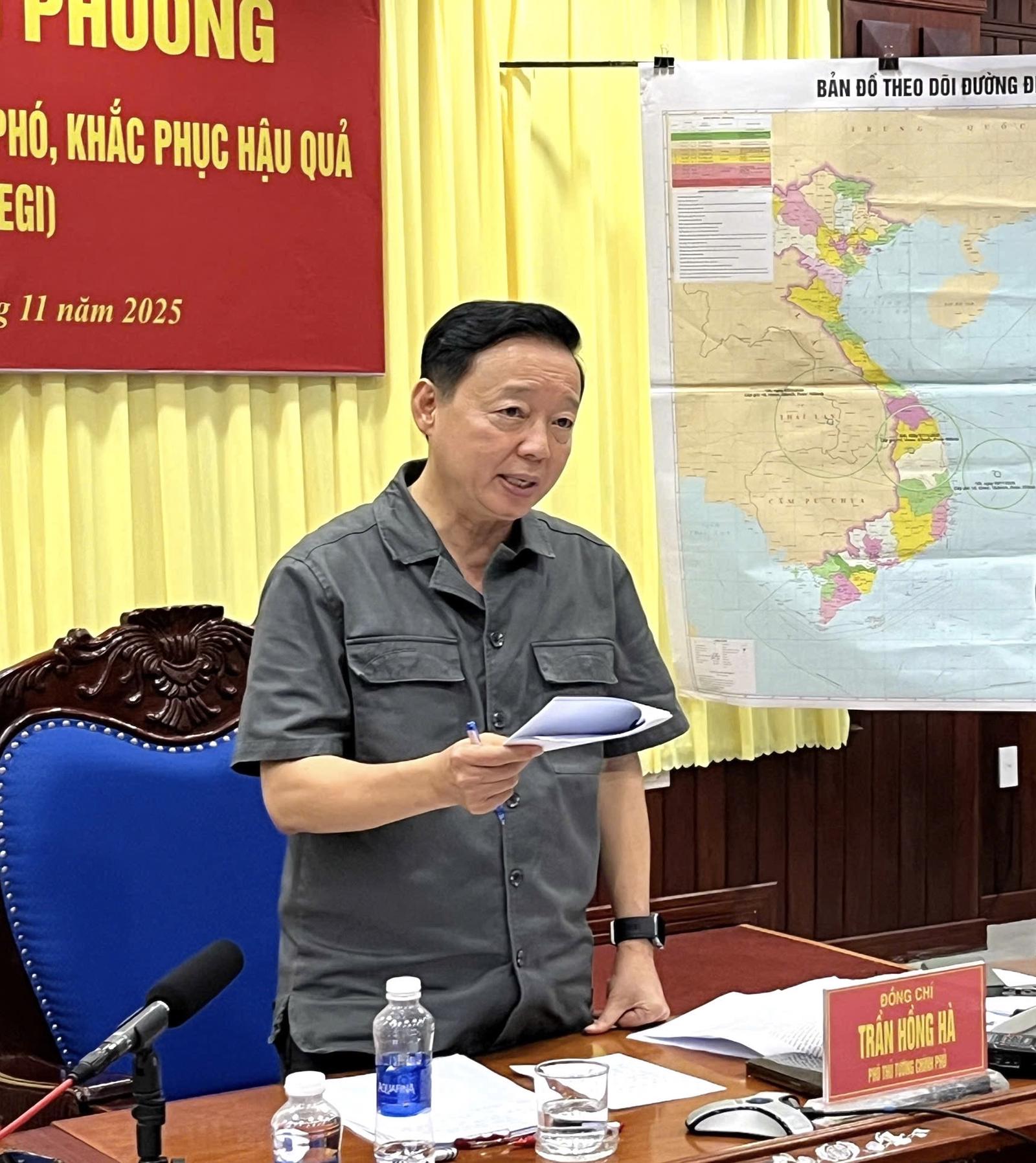 Phó Thủ tướng Trần Hồng Hà yêu cầu các địa phương phân bổ lực lượng, phương tiện, trang thiết bị hợp lý tại các khu vực xung yếu; sẵn sàng công tác cứu hộ, cứu nạn. Ảnh: GL