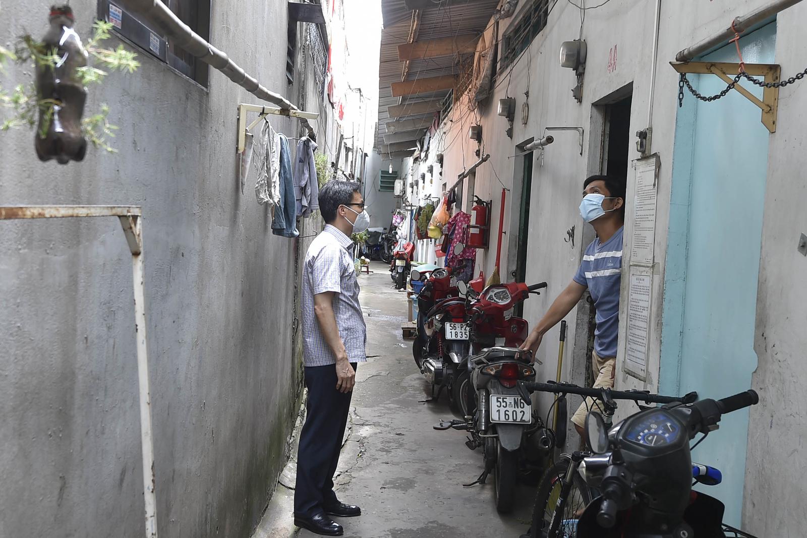 Phó Thủ tướng thị sát khu cách ly F0 nằm trên đường Văn Thân, phường 8, quận 6. Ảnh: Bộ Y tế