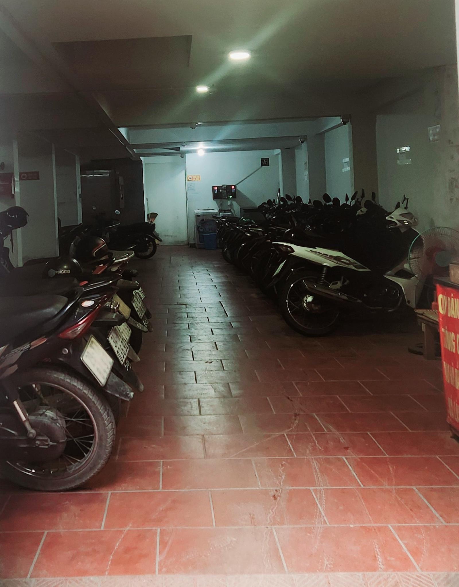 Bên trong các chung cư mini cao tầng cho thuê trọ có đặc điểm chung là chỗ để xe máy ở tầng 1, nếu không may xảy ra hoả hoạn, sẽ bịt kín lối thoát hiểm. Ảnh: HH