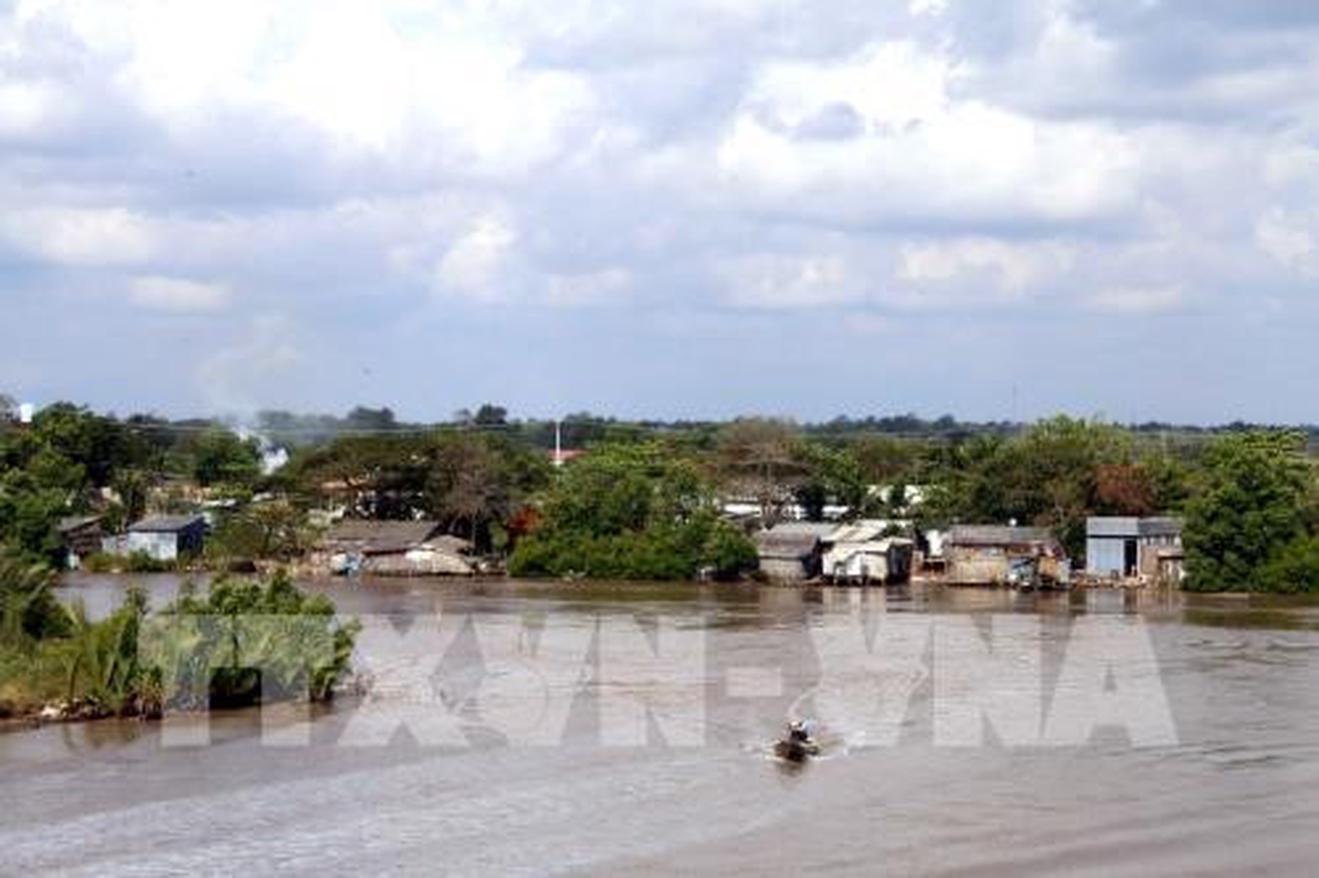 Nhiều ngôi nhà xây cất ven sông, ven biển ở Cà Mau đang bị đe dọa trước nguy cơ sạt lở và nước dâng cao. Ảnh: TTXVN