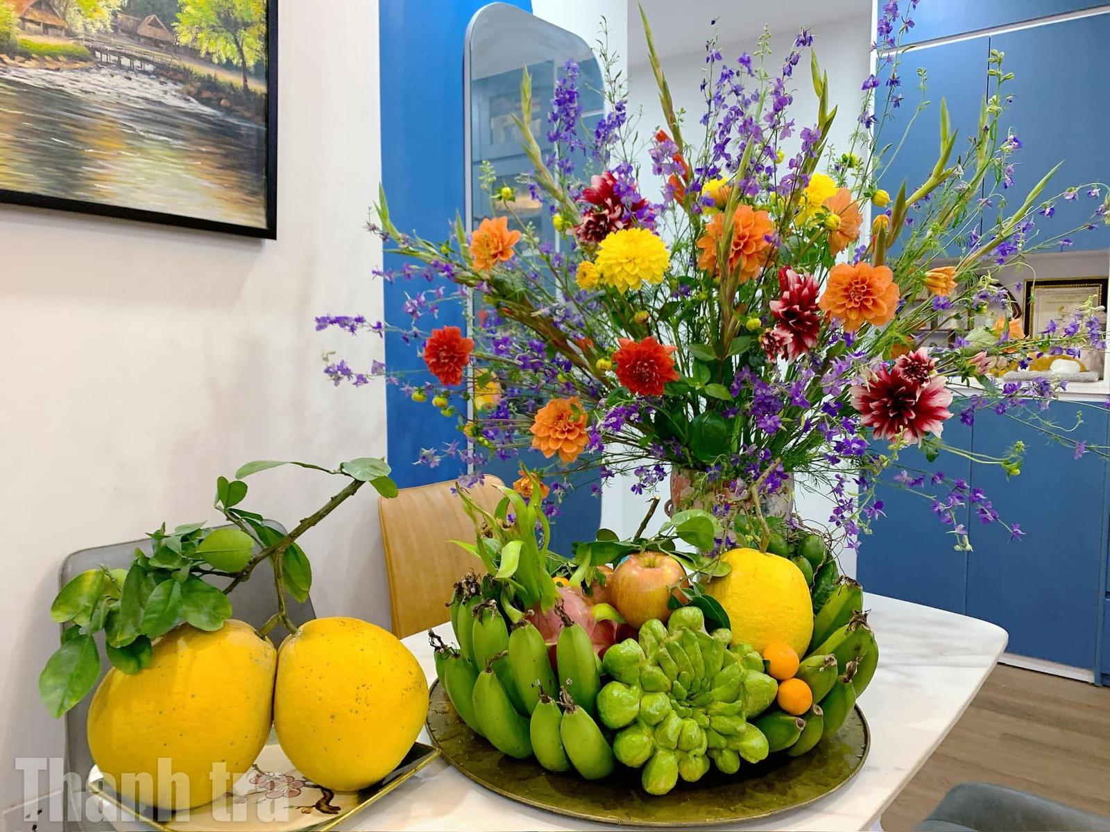 Mâm lễ hoa quả chuẩn bị cho nghi lễ "tiễn" Táo Quân. Ảnh: TM