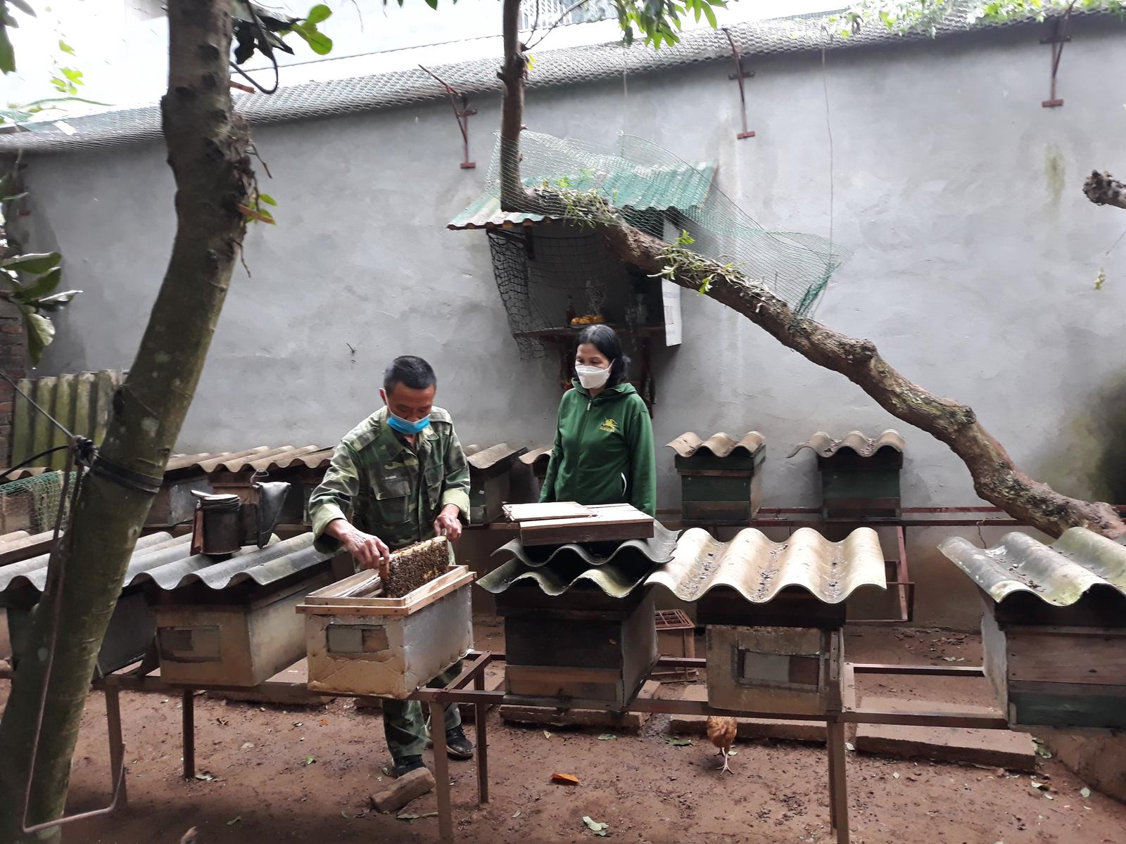 Bà Nguyễn Thu Hà kiểm tra, chăm sóc đàn ong. Ảnh: NP