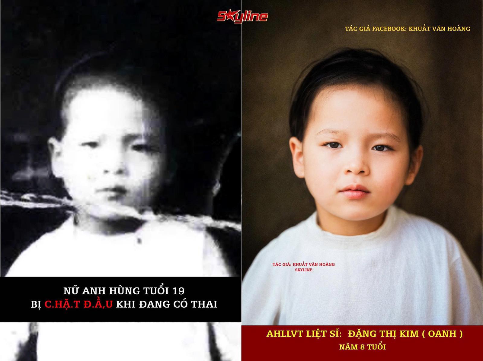 Hình ảnh Anh hùng Lực lượng vũ trang nhân dân Liệt sĩ Đặng Thị Kim (Oanh) trước và sau khi được Skyline phục dựng ảnh. Ảnh: NVCC