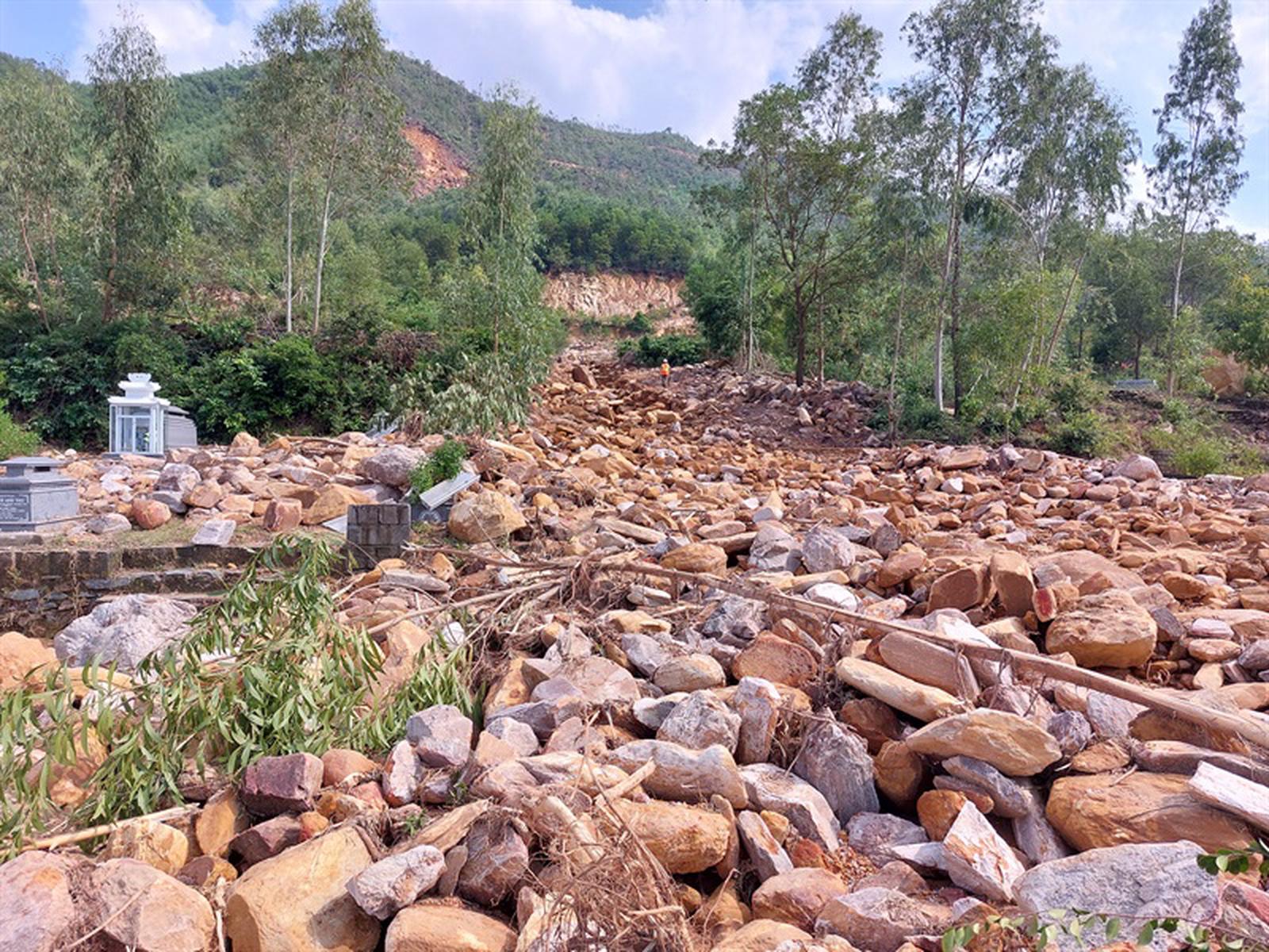 Tại hiện trường xảy ra nhiều điểm sạt lở đất, đá, địa hình phức tạp nên việc kiểm tra, thống kê cụ thể bao nhiêu ngôi mộ bị vùi lấp vẫn chưa thể hoàn tất.