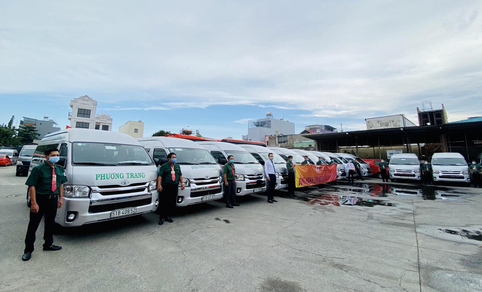 Các bác tài và đội ngũ nhân viên Tập đoàn Phương Trang sẵn sàng lên đường chống dịch. Ảnh: PT