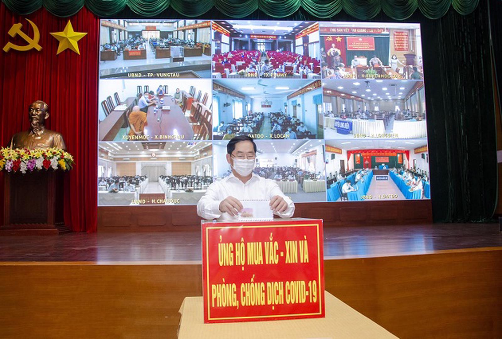 Bí thư Tỉnh ủy Bà Rịa-Vũng Tàu dẫn đầu đoàn cán bộ tỉnh ủng hộ cho Quỹ trong buổi lễ phát động trực tuyến trong toàn tỉnh