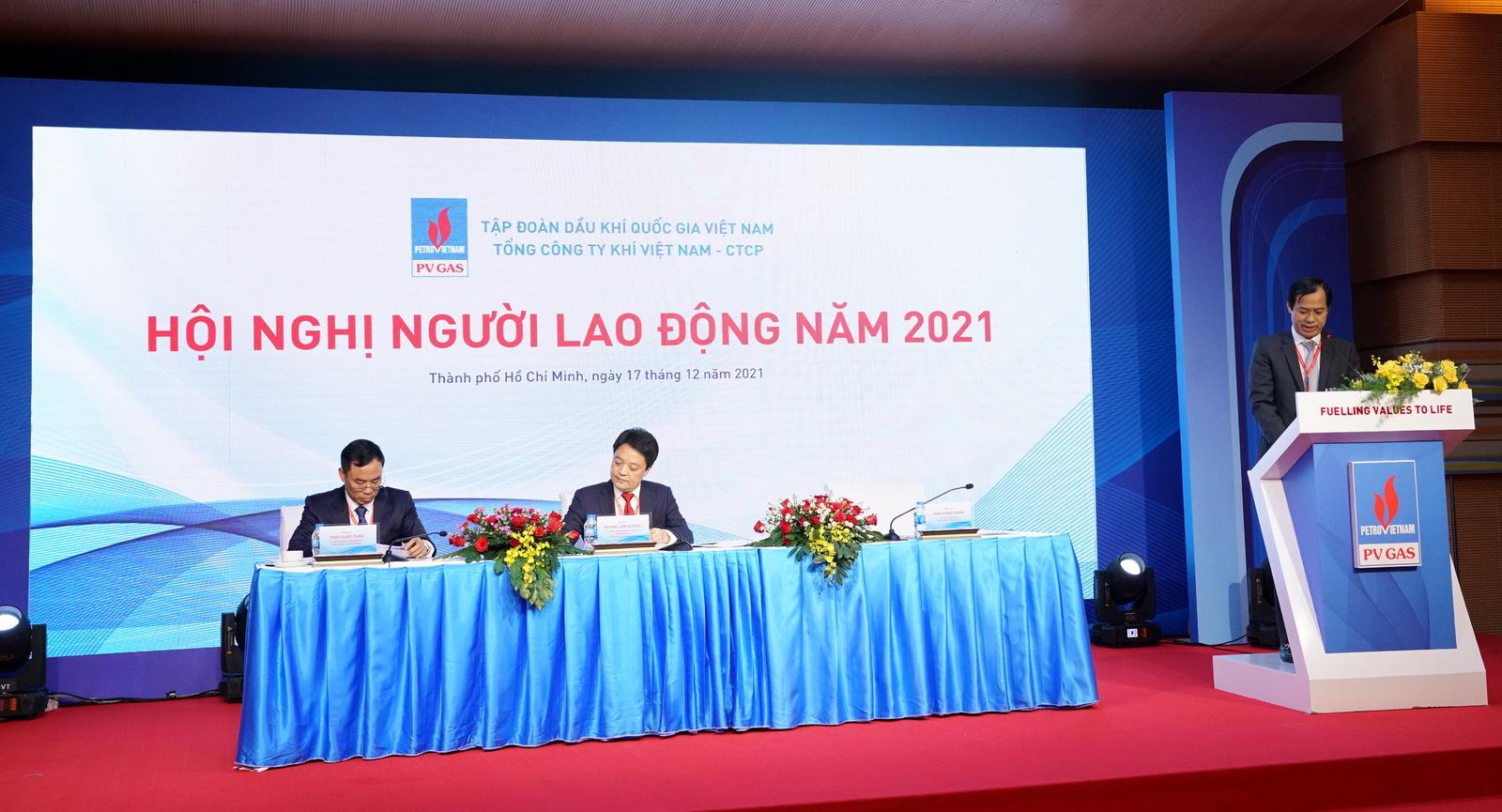 Tại Hội nghị, Chủ tịch Công đoàn PV GAS Trần Xuân Thành cũng đã báo cáo tình hình thực hiện Thỏa ước lao động tập thể, Nội quy lao động, Quy chế dân chủ, Tổng kết thi đua khen thưởng và triển khai Văn hóa doanh nghiệp năm 2021 của TCT. Trong năm 2021, mặc dù tình hình dịch bệnh Covid-19 diễn biến phức tạp gây ảnh hưởng đến hoạt động SXKD, tuy nhiên PV GAS vẫn đảm bảo việc làm ổn định cho người lao động. TCT tiếp tục duy trì thực hiện Thỏa ước lao động hiện hành với nhiều nội dung có lợi cho người lao động. Công tác tái tạo và lan tỏa văn hóa doanh nghiệp được đẩy mạnh theo định hướng của Tập đoàn và yêu cầu về việc xây dựng nét văn hóa đặc trưng của PV GAS với các giá trị cốt lõi: An toàn – Chuyên nghiệp – Hợp tác – Đổi mới – Hiệu quả. Công tác thi đua, khen thưởng, nhân rộng các điển hình tiên tiến được quan tâm chú trọng, thực sự là động lực thúc đẩy người lao động khắc phục mọi khó khăn, hoàn thành nhiệm vụ được giao, góp phần vào hoàn thành các chỉ tiêu kế hoạch năm 2021 của PV GAS.