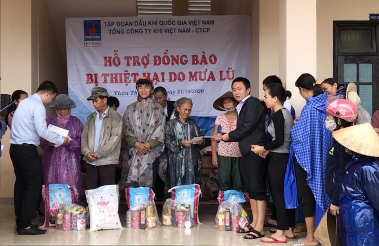Tại tỉnh Thừa Thiên - Huế, đoàn đã tới thăm hỏi động viên và trao quà cứu trợ tại 4 xã Phú Thanh, Phú Mậu, Phú Lương, Phú Hồ - huyện Phú Vang và đến gặp gỡ, động viên cán bộ chiến sỹ Phòng Cảnh sát PCCC và Cứu nạn cứu hộ tỉnh. Tổng cộng 600 triệu đồng đã được chia sẻ và trao tặng, mang theo rất nhiều tình cảm của PV GAS đế bà con.