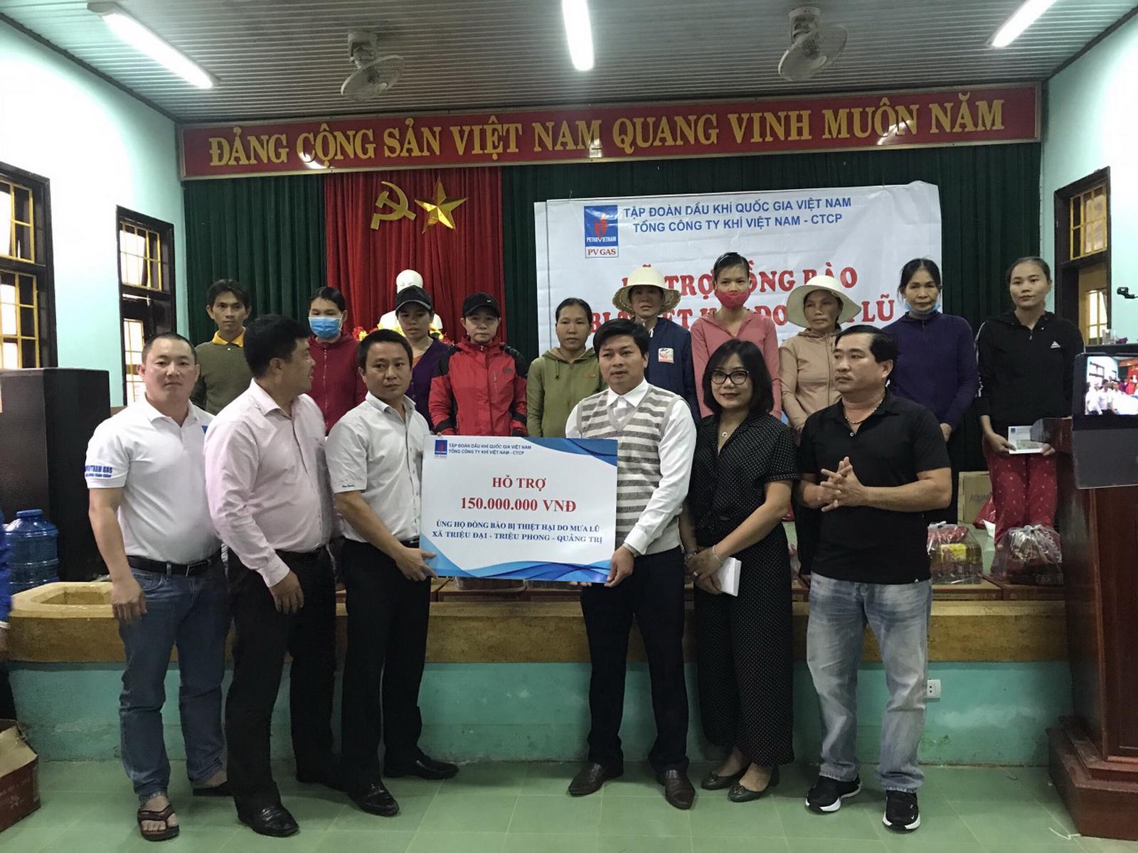 Tại Quảng Trị, đoàn đã tới 2 xã Triệu Đại - huyện Triệu Phong và Hải Định - huyện Hải Lăng. Tại đây, Công đoàn PV GAS đã hỗ trợ hoạt động cho Ủy ban Mặt trận xã, trao 100 suất quà với các nhu yếu phẩm và tiền mặt cho các hộ nghèo và cận nghèo bị thiệt hại nhiều do mưa lũ.
