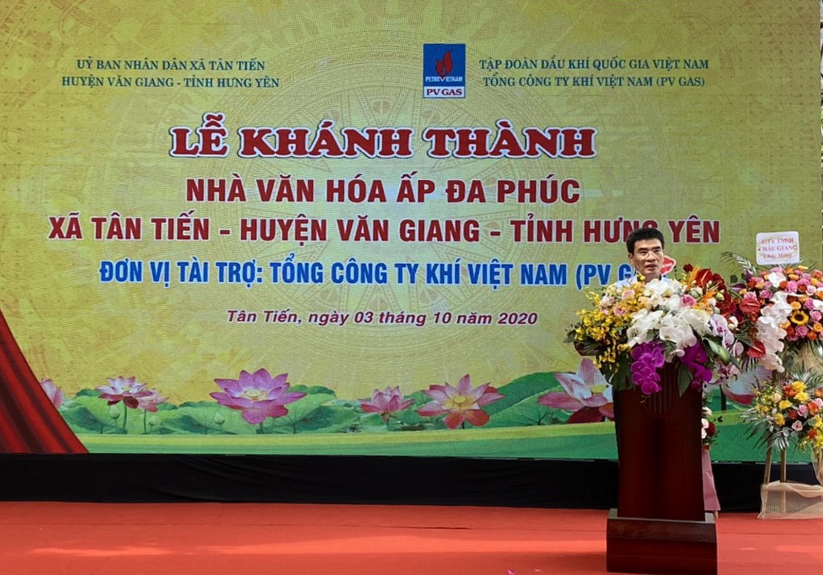 Tại buổi lễ Khánh thành bàn giao công trình, đồng chí Dương Mạnh Sơn, Tổng Giám đốc PV GAS đã phát biểu, chia sẻ niềm vui cùng nhân dân tỉnh Hưng Yên: Công trình Văn hóa được PVN/PV GAS tài trợ xây dựng này được hoàn thành và đưa vào sử dụng vào đúng thời điểm cả nước hân hoan chào mừng các ngày kỷ niệm lớn của dân tộc; Ngành Dầu khí cũng đón mừng 45 năm ngày thành lập và Tổng Công ty Khí Việt Nam – PV GAS vừa tròn 30 tuổi (20/9/1990 - 20/9/2020), xứng đáng với vai trò đơn vị dẫn đầu - Lá cờ đầu của Tập đoàn Dầu khí Quốc gia Việt Nam – Doanh nghiệp chủ lực của ngành Công nghiệp Khí nước nhà.