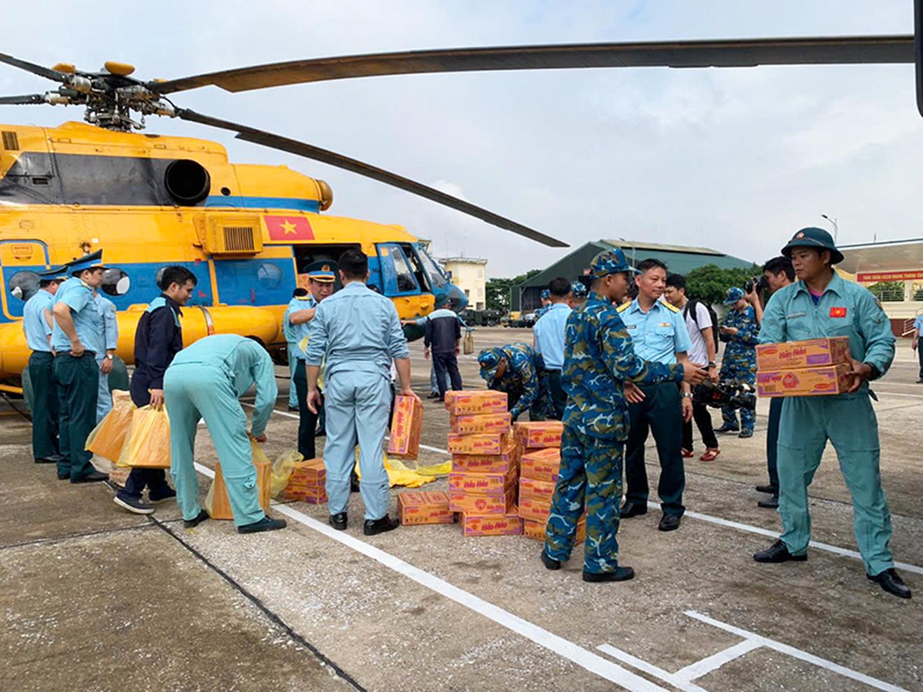 Ba chiếc trực thăng đã được sử dụng trong đợt cứu trợ này. Cụ thể, chiếc trực thăng Mi-171 cất cánh lúc 7 giờ 30 phút, tiếp theo là hai chiếc Mi-17 cất cánh lúc 8 giờ 20 phút và 10 giờ 15 phút từ Sân bay Hòa Lạc, bay về Sân bay Gia Lâm, Hà Nội, để bốc xếp hàng cứu trợ. Mỗi máy bay đã bốc xếp 2 tấn hàng nhu yếu phẩm thiết yếu, bao gồm: Mì tôm, nước uống, lương khô, áo phao, sữa…