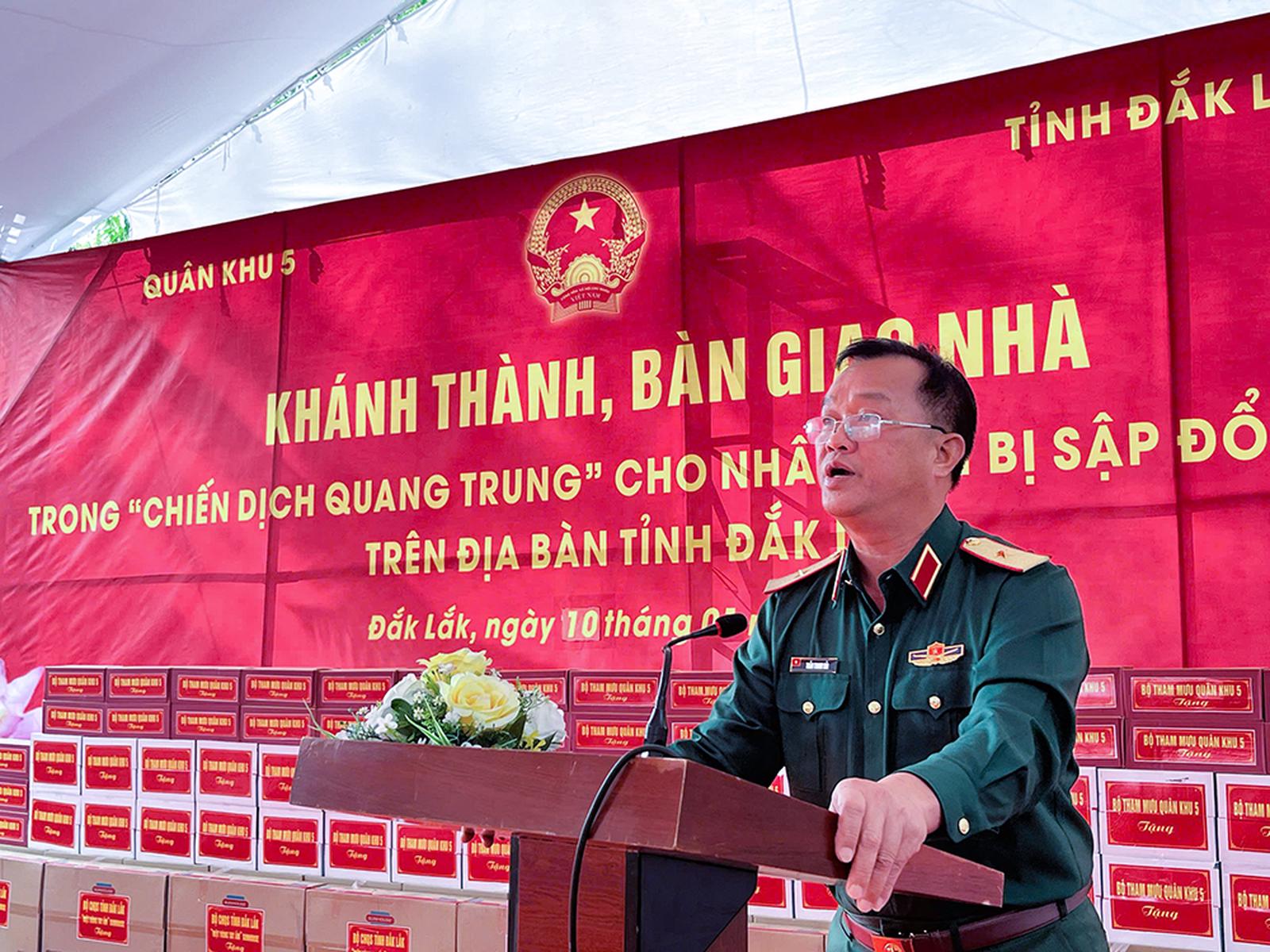 Ngày 10/1, Quân khu 5 đã phối hợp với UBND tỉnh Đắk Lắk tổ chức lễ khánh thành và bàn giao 229 căn nhà mới cho các hộ dân có nhà bị sập đổ hoàn toàn do thiên tai trên địa bàn.