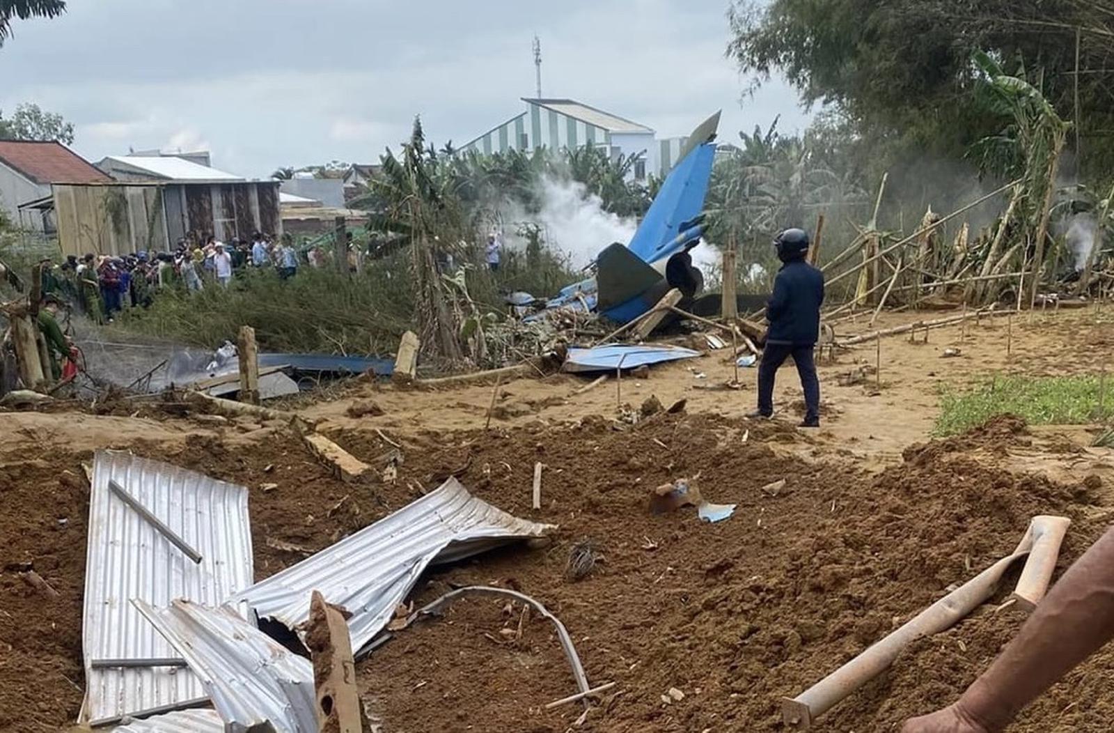 Hiện trường vụ máy bay rơi tại phường Điện Nam Bắc. Ảnh: L.B
