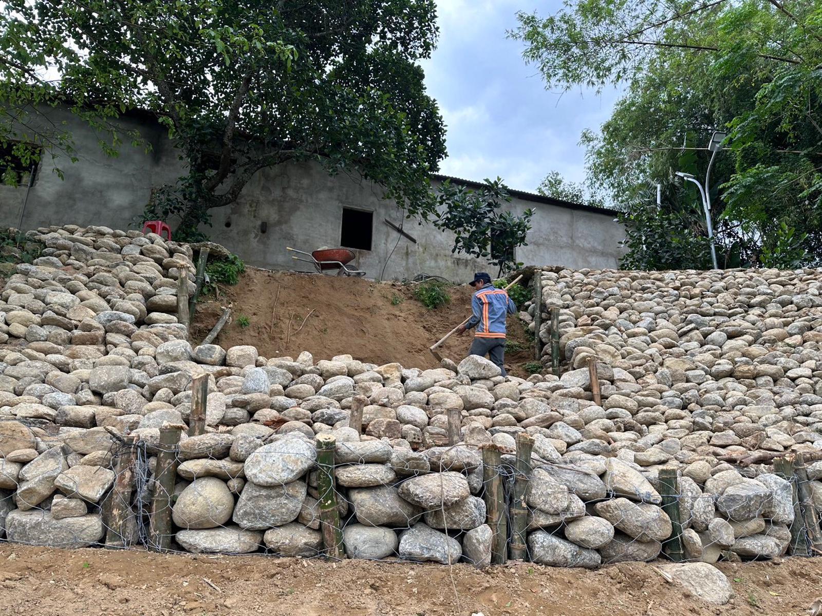 Chùa Hà Tân tự khắc phục tình trạng sạt lở nghiêm trọng vào mùa mưa bão. Ảnh: N.P
