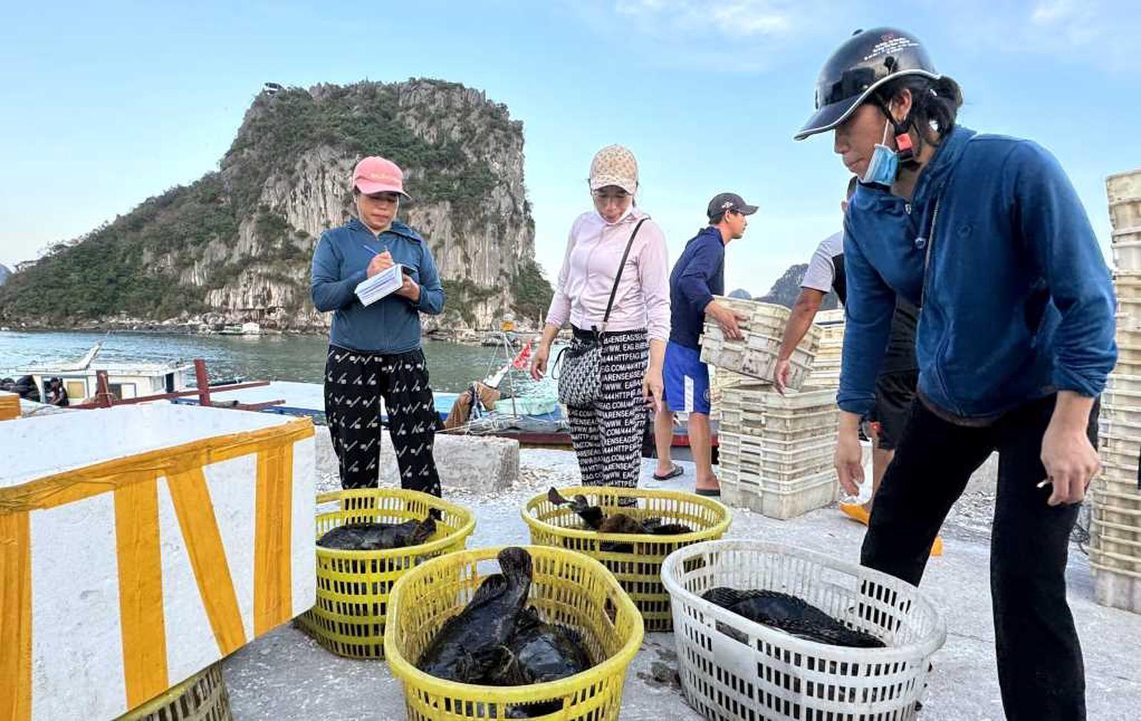 Người dân nuôi trồng thủy sản huyện Vân Đồn tận thu cá song còn lại ở lồng bè sau bão, dần khôi phục sản xuất. Ảnh: TTTT