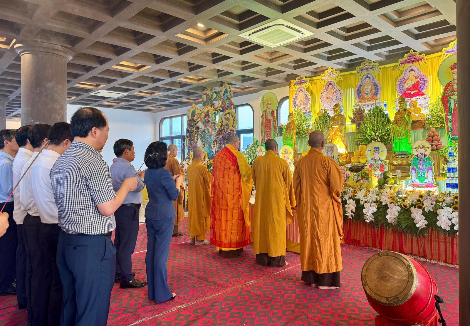 Tham dự có Ủy viên Trung ương Đảng, Bí thư Tỉnh ủy Quảng Ninh, Trưởng đoàn Đại biểu Quốc hội tỉnh Vũ Đại Thắng; Phó Bí thư thường trực Tỉnh ủy, Chủ tịch Hội đồng nhân dân tỉnh Trịnh Thị Minh Thanh; Phó Bí thư Tỉnh ủy Vũ Quyết Tiến, cùng các đồng chí trong Ban thường vụ Tỉnh ủy, lãnh đạo các sở, ban ngành tỉnh, phường Bãi Cháy và đông đảo tăng ni, phật tử.