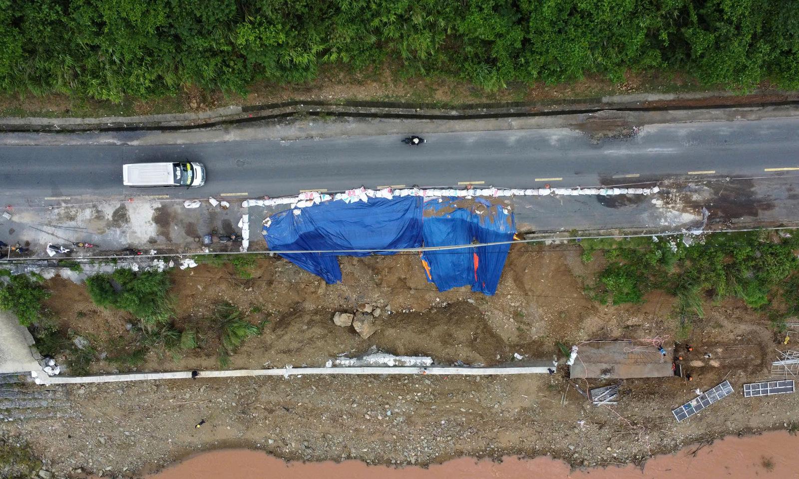 Đặc biệt, tại điểm sụt taluy âm Km50+560 QL 9 (trái tuyến, đoạn qua huyện Đakrông) với phạm vi nứt vỡ, lún sụt nền đường dài khoảng 65m, taluy cao H=13-15m, sạt lở hàm ếch ăn sâu vào nền đường cũ, tiềm ẩn nguy cơ cao đứt đường, gây ách tắc giao thông. Đây được xác định là điểm sạt lở nghiêm trọng tại thời điểm này khi điểm sụt gần như “ăn sâu” vào một nửa mặt đường.