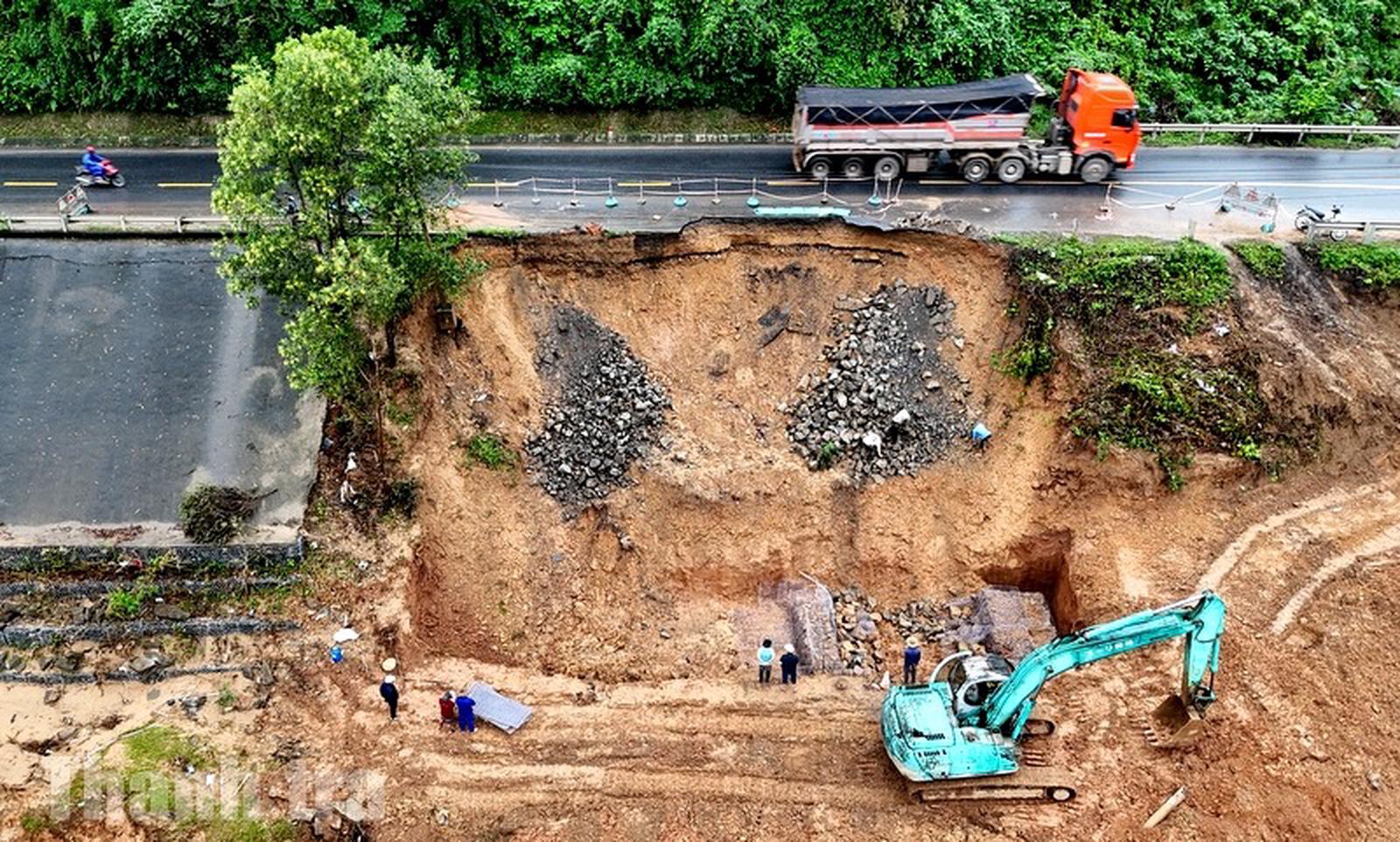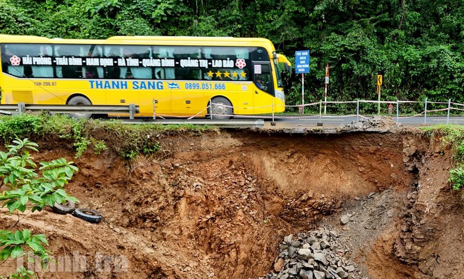 Ngay những ngày mưa kéo dài, lực lượng bảo trì giao thông tỉnh Quảng Trị đã có mặt liên tục trên tuyến. Mưa lớn kéo dài đã khiến đất đá từ taluy dương đổ xuống từng mảng lớn, taluy âm sạt lở khiến mặt đường bị cắt, rãnh dọc biến mất dưới lớp bùn đậm đặc. Người dân đi đường phải dừng lại quan sát từng đoạn, vừa đi vừa né các khối trượt mới hình thành.