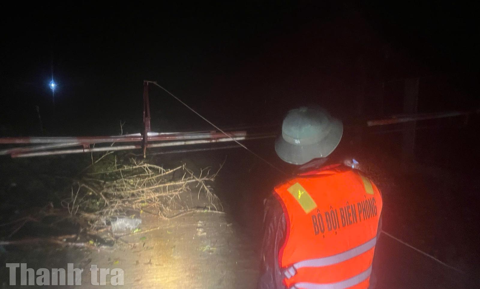 Lực lượng Bộ đội Biên phòng tỉnh Quảng Trị xuyên đêm triển khai chốt chặn tại các khu vực có nguy cơ sạt lở, ngập lũ. Ảnh: Minh Tân