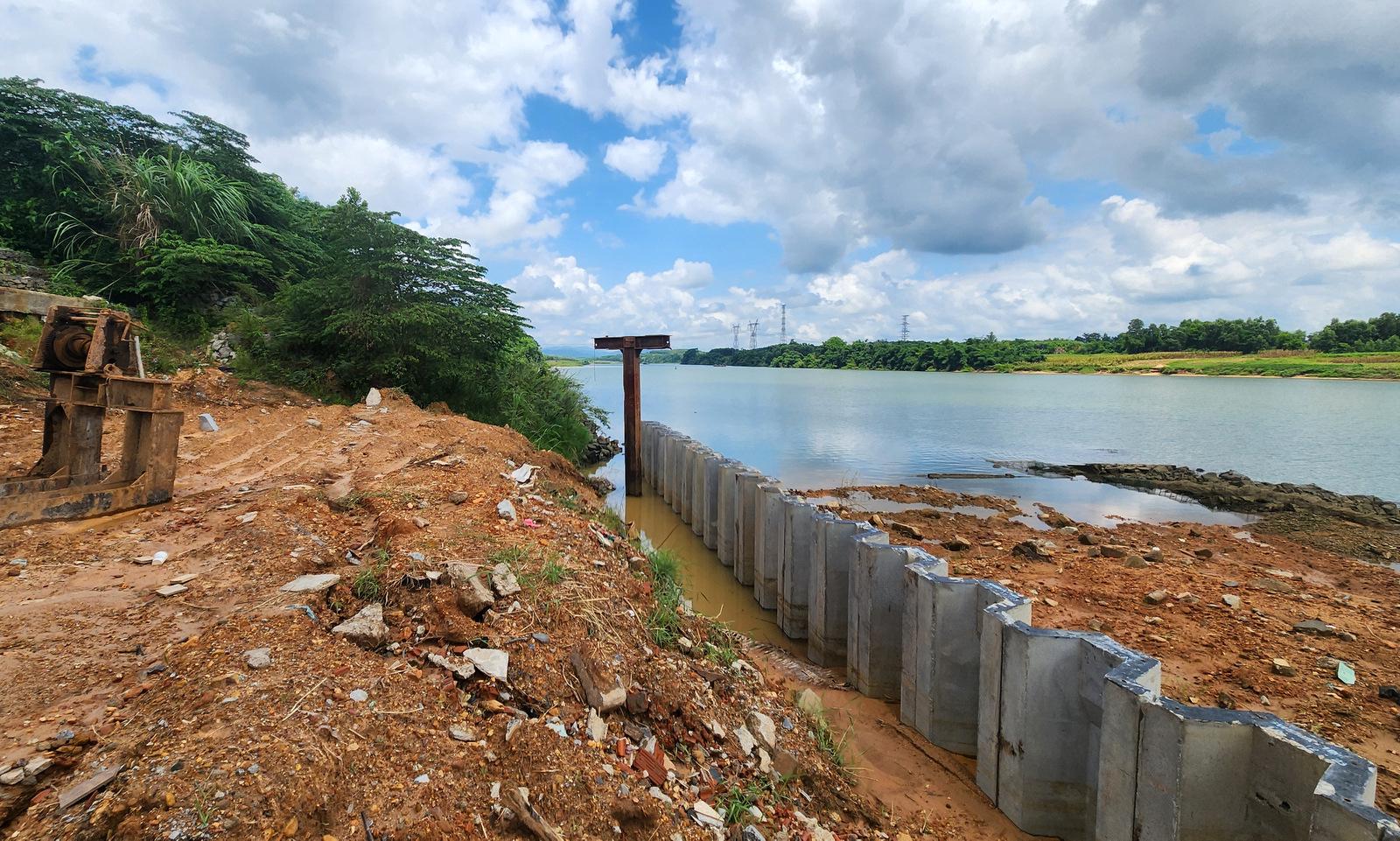 Một đoạn kè chậm tiến độ bị thu hồi vốn, nếu không sớm gia cố sẽ tiềm ẩn nguy cơ khi mùa mưa lũ đến. Ảnh: Minh Tân