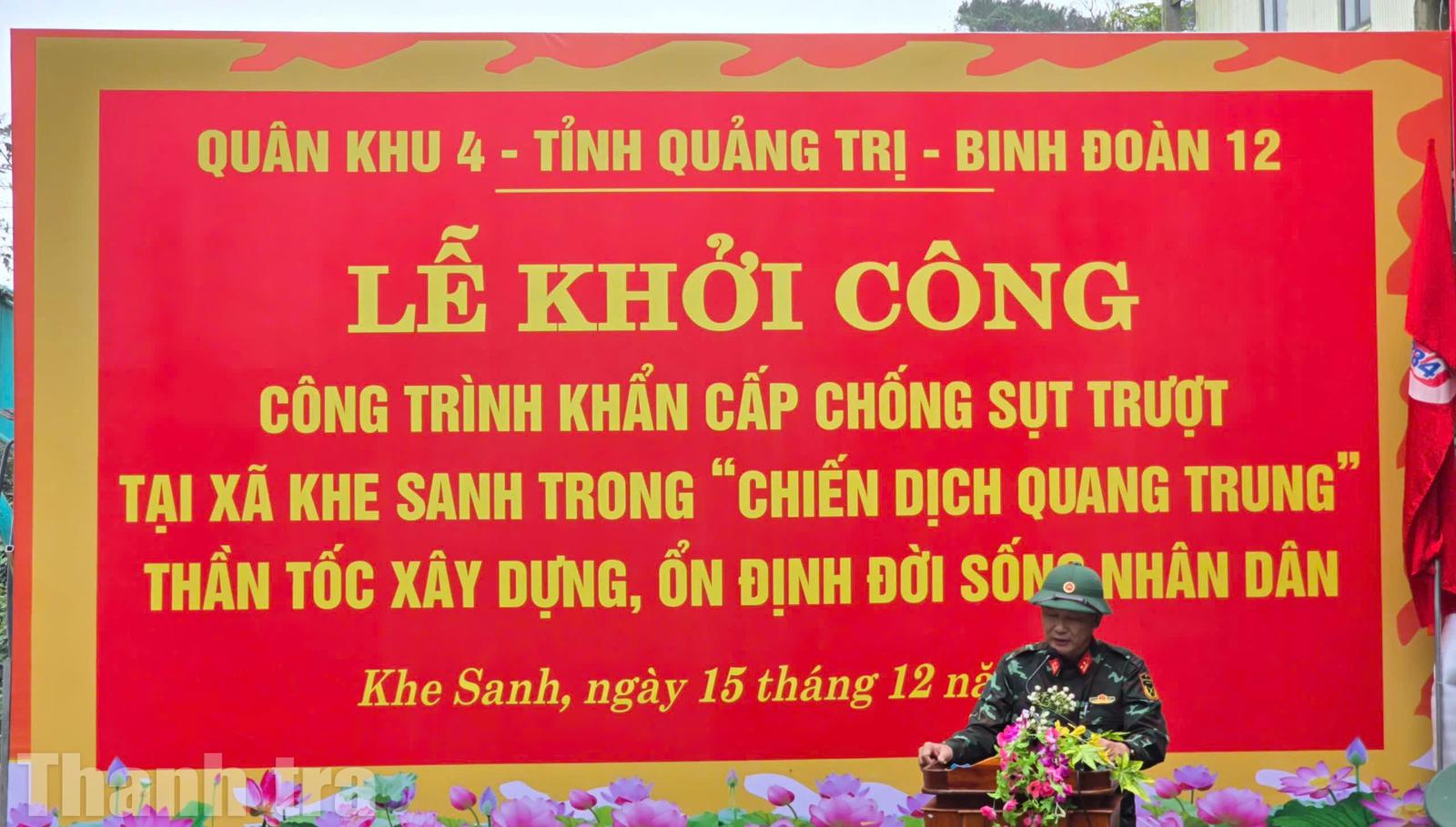 Đồng chí Thiếu tướng Hoàng Duy Chiến, Phó Tư lệnh Quân khu 4, khẳng định đơn vị được Bộ Quốc phòng giao nhiệm vụ điều động lực lượng công binh tham gia trực tiếp vào quá trình xây dựng nhà ở cho người dân. Thiếu tướng Hoàng Duy Chiến yêu cầu tổ chức thi công "3 ca, 4 kíp", toàn lực lượng thực hiện tốt phương châm “vượt nắng, thắng mưa - Mỗi người làm việc bằng hai” để đẩy nhanh tiến độ.