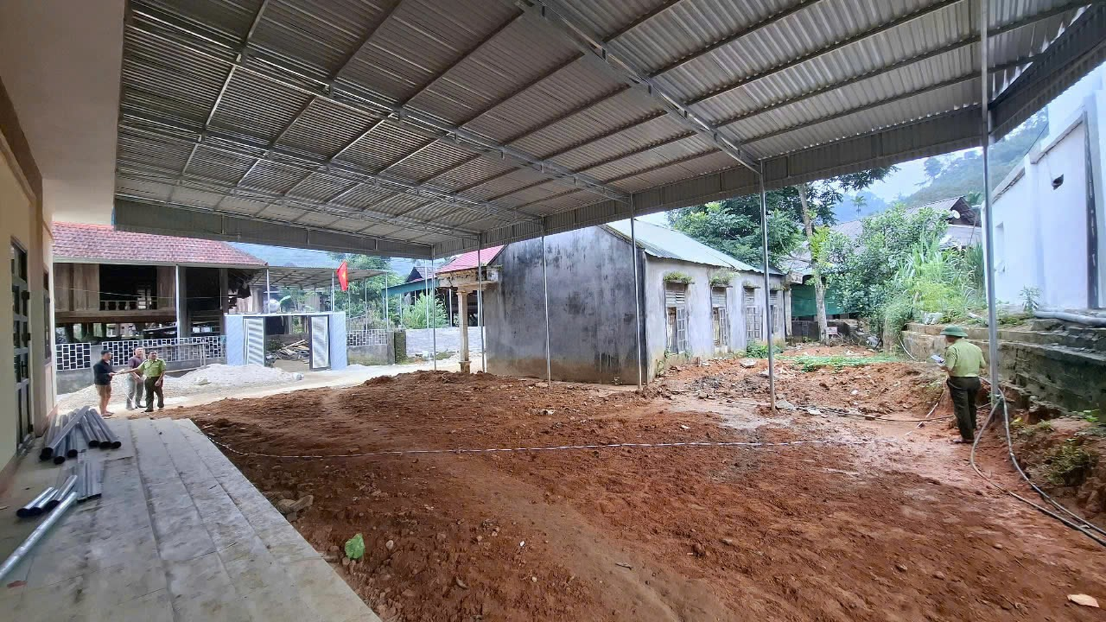 Chủ rừng là tổ chức phối hợp kiểm tra việc thực hiệnxây dựng sân nhà văn hoá của cộng đồng dân cư được hỗ trợ từ nguồn kinh phí ERPA. Ảnh: P.V