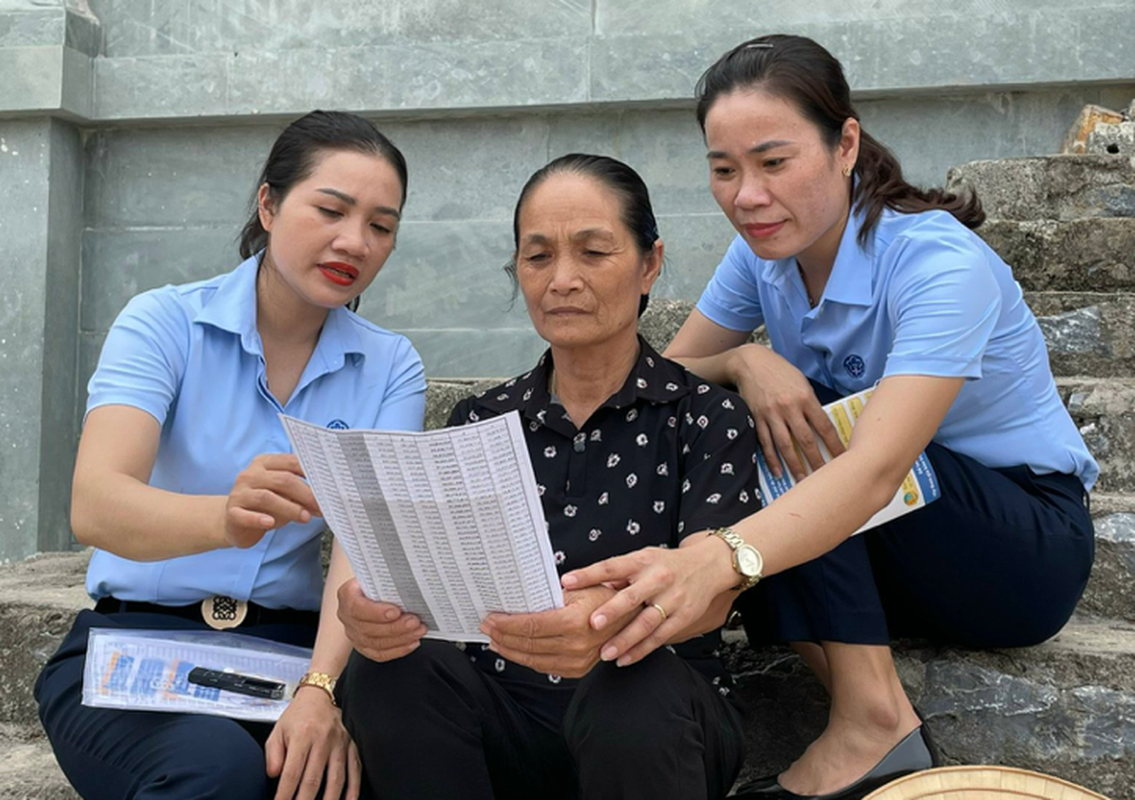 Cán bộ BHXH thị xã Ba Đồn (tỉnh Quảng Bình) tư vấn BHXH tự nguyện cho người dân trên địa bàn. Ảnh: Báo sức khỏe và đời sống