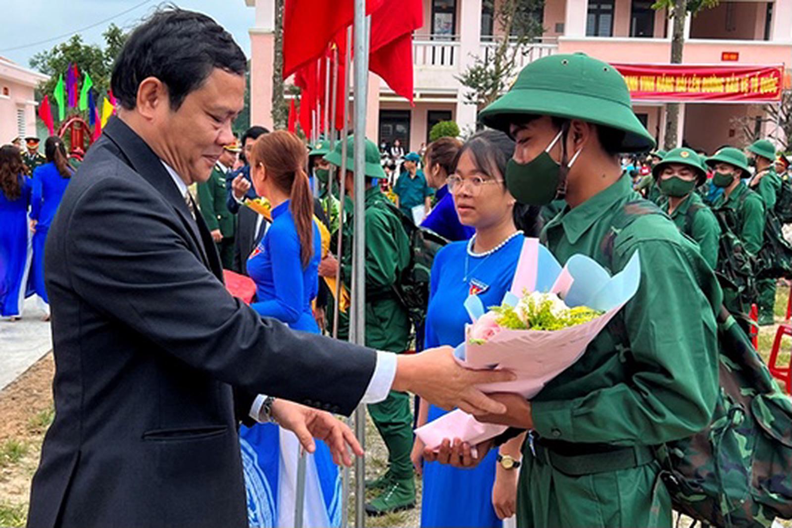 Bí Thư Tỉnh uỷ Quảng Nam Phan Việt Cường động viên tân binh. Ảnh: N.P