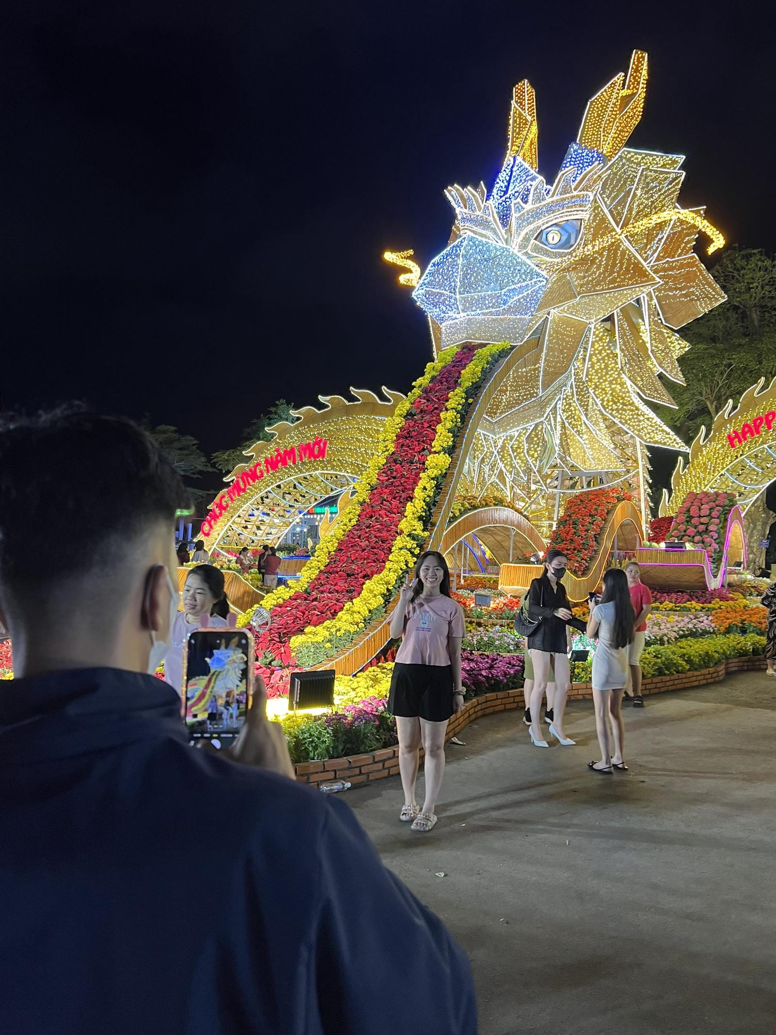 Đang chụp ảnh trên đường hoa Xuân Giáp Thìn 2024, gia đình anh Thái và chị Nhung, trú tại TP Tuy Hoà cho hay, cách bày trí rất đẹp, hình ảnh linh vật rồng được thiết kế rất bắt mắt… không có từ nào diễn tả được vẻ đẹp của nó.