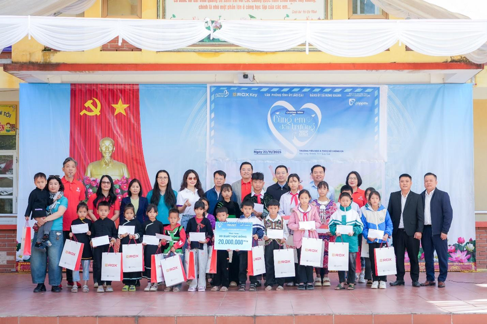 ROX Group và ROX Key cũng vừa trao 4 ngôi nhà tình nghĩa, 2 công trình vệ sinh, 20 học bổng và hàng ngàn quyển vở, đồ dùng học tập tại xã Hưng Khánh, Lào Cai.