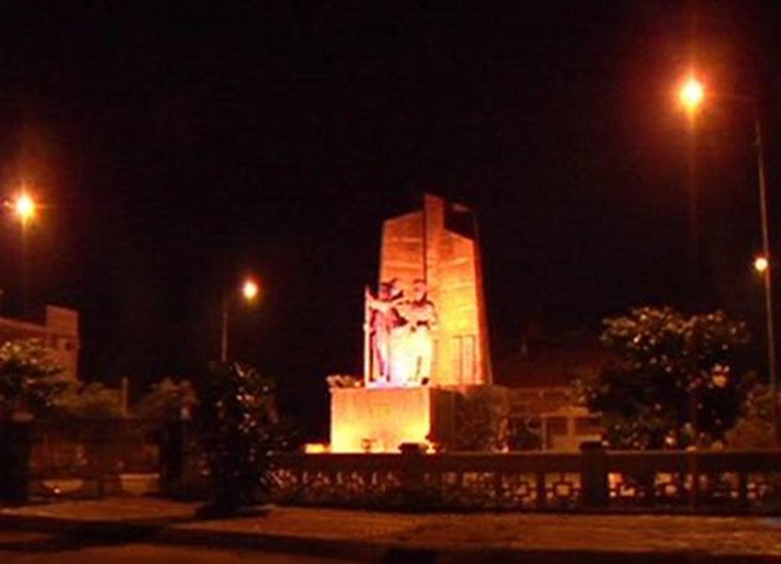 Tượng đài Hải đội Hoàng Sa kiêm quản Bắc Hải cũng rực sáng ánh điện. Ảnh: Khánh Linh