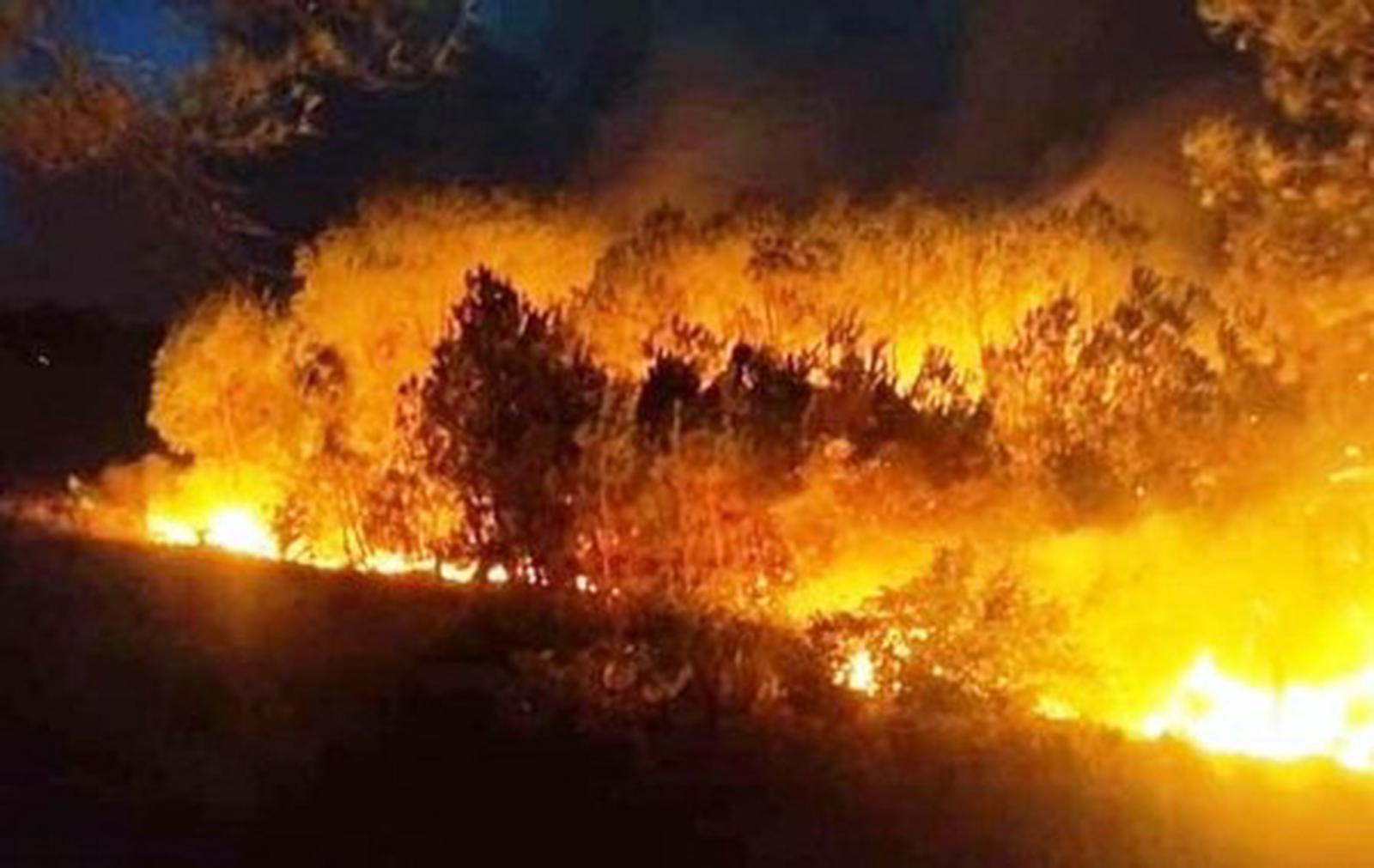 Rừng Diễn Lợi, Diễn Châu bốc cháy dữ dội. Ảnh: Hoàng Thông