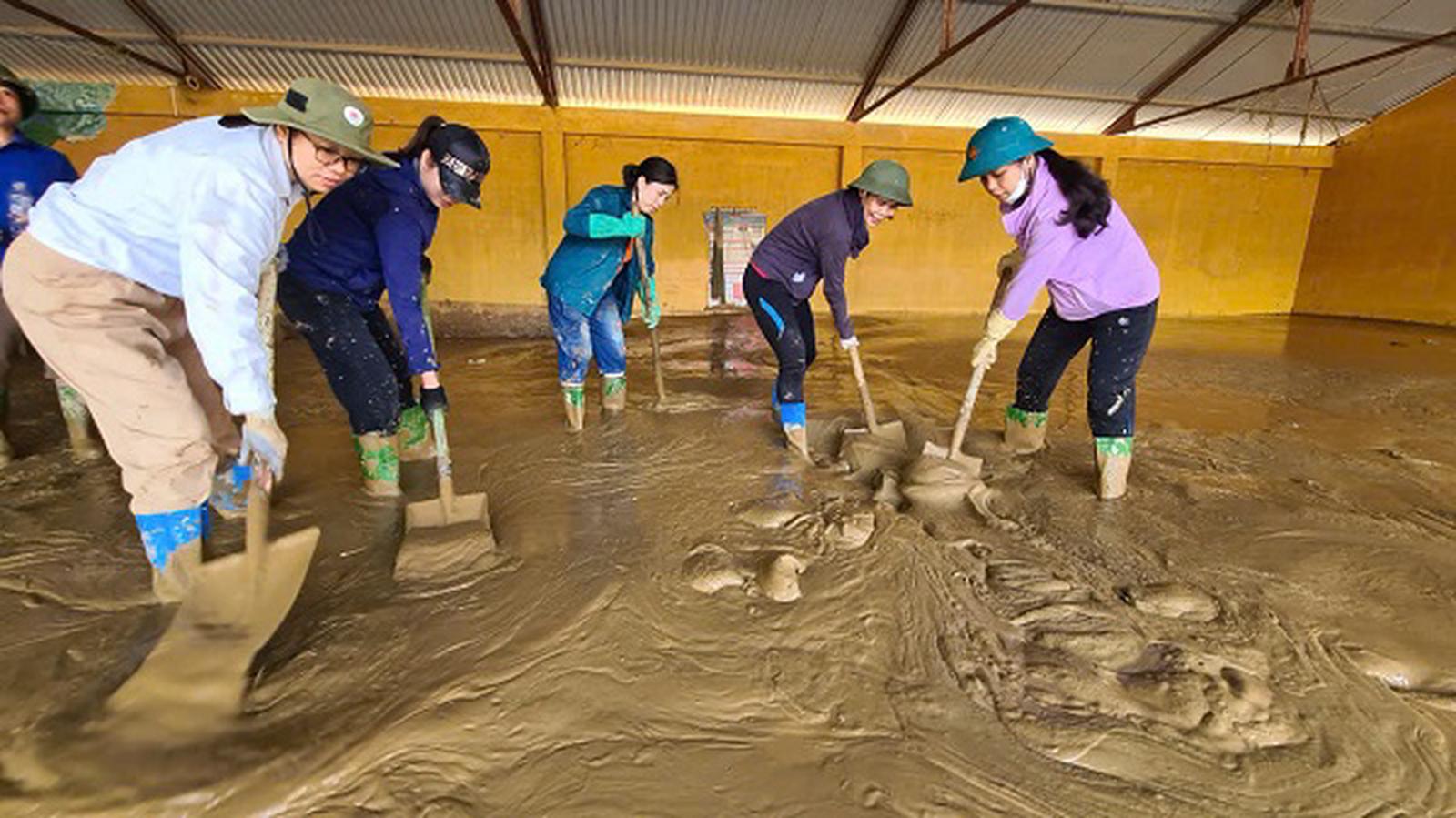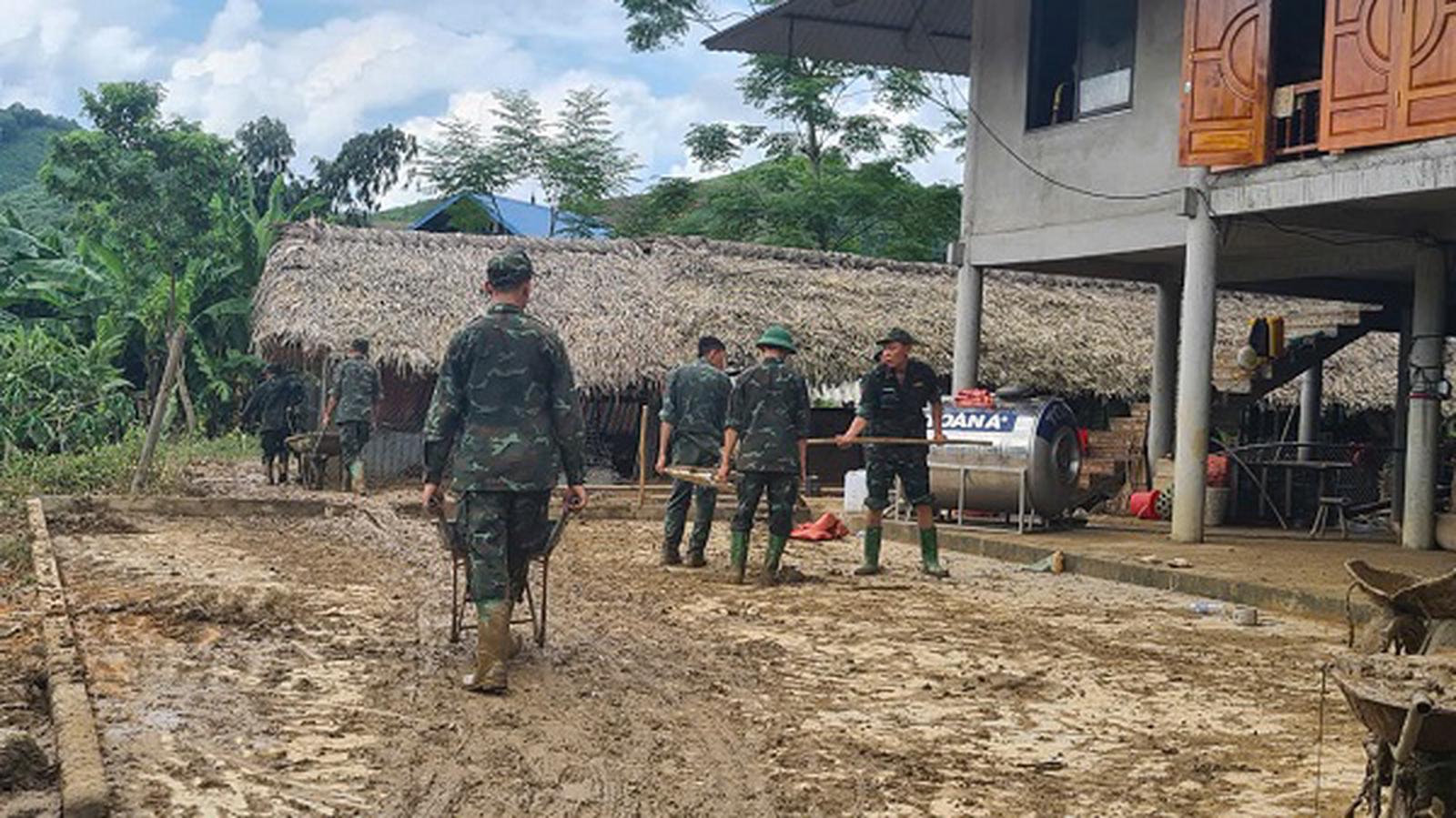 Để sớm ổn định cuộc sống người dân sau lũ, các cán bộ, chiến sỹ cùng các lực lượng khác như cán bộ công chức và các đoàn thể xã, giáo viên, Nhân dân, các tình nguyện viên đã chia thành nhiều nhóm thực hiện thu dọn bùn đất, vệ sinh môi trường tại các cơ quan, trường học, nhà dân, tham gia giải tỏa các tuyến đường bị sạt lở để nhanh chóng khôi phục lại lưu thông.