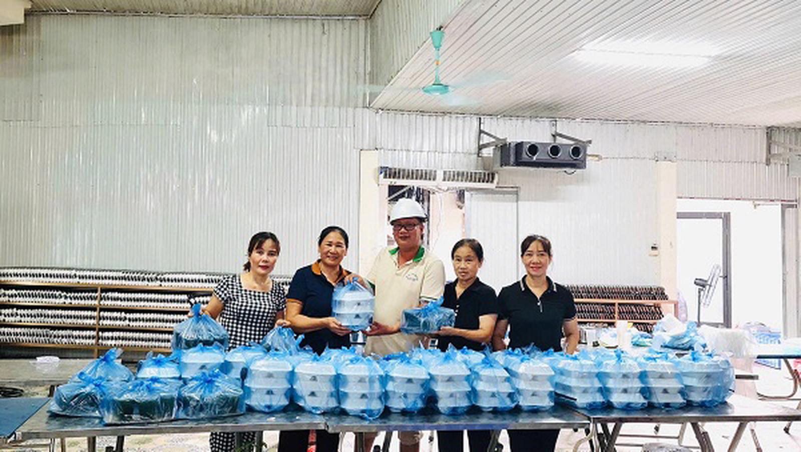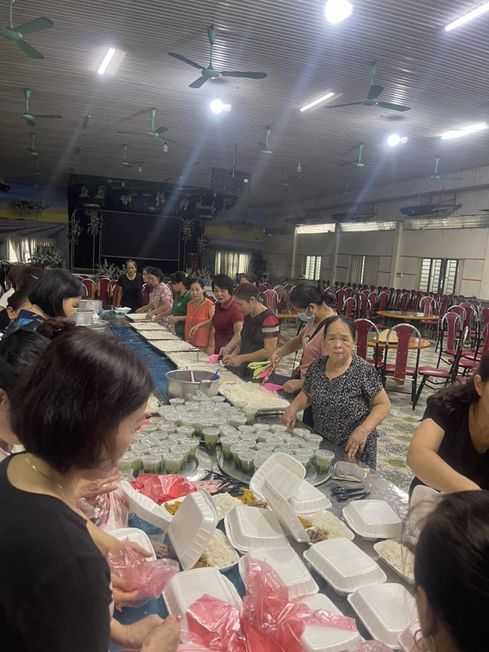 Mỗi ngày, Nhân dân tổ dân phố 3, thị trấn Yên Thế nấu hàng trăm suất cơm gửi đi vùng lũ. Ảnh: Bùi Bình