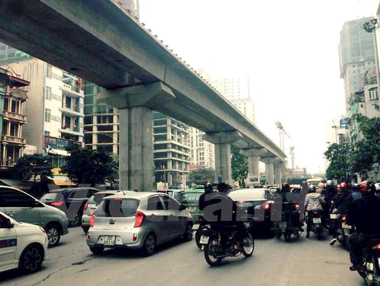 Theo quan sát của phóng viên Vietnam+ có mặt tại hiện trường, đến thời điểm này, toàn bộ hiện trường sập giàn giáo đã được che kín.Toàn bộ dầm chắn ngang trên đường sắt trên cao vắt qua 2 chiều đường Trần Phú đã sập thẳng xuống phía dưới. Một phần trụ bị sập vẫn nhô lên đường trên cao và có dấu hiệu gãy gập.Tại phần giàn giáo bị sập, theo quan sát, còn rất nhiều bê tông chưa khô. Thông tin ban đầu cho biết, đêm qua lực lượng thi công tiến hành đổ bê tông, khi đang tiến hành thì xảy ra sự cố.Đáng chú ý, khu vực xảy ra vụ này cách nơi xảy ra tai nạn chết người trước đó chỉ hơn 100m.Đây là đoạn thi công kết cấu trên ga bến xe Hà Đông, công trình được triển khai thi công trở lại từ ngày 21/11/2014. Nhà thầu là Công ty cổ phần tư vấn công nghệ và đầu tư xây dựng Việt Nam.Hiện các cần cẩu đang tiến hành cẩu phần sắt thép bị sập ra ngoài. Công nhân đang che chắn hiện trường. (Ảnh: Sơn Bách/Vietnam+)