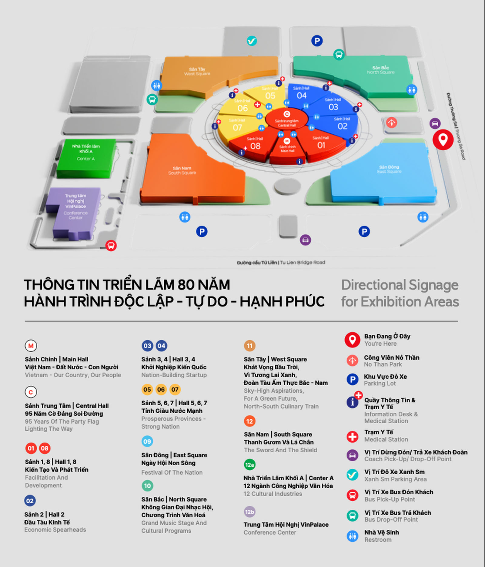 Để tạo điều kiện thuận lợi tối đa cho Nhân dân và du khách, Ban Tổ chức đã công bố sơ đồ tổng thể các khu vực chuyên đề tại Trung tâm Triển lãm Quốc gia. Sơ đồ này sẽ là công cụ hướng dẫn hiệu quả, giúp khách tham quan dễ dàng lựa chọn điểm đến phù hợp, đảm bảo một hành trình khám phá trọn vẹn và ý nghĩa.