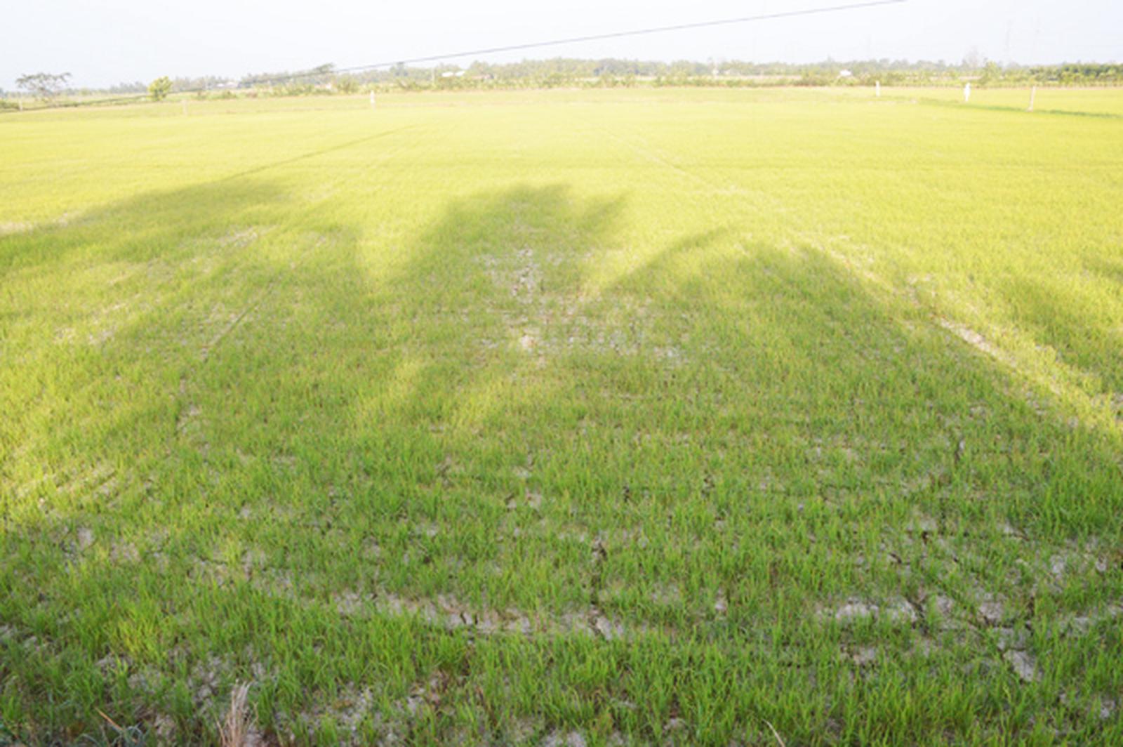 Lúa tại huyện Long Phú, tỉnh Sóc Trăng bị thiếu nước nghiêm trọng. Ảnh: XC