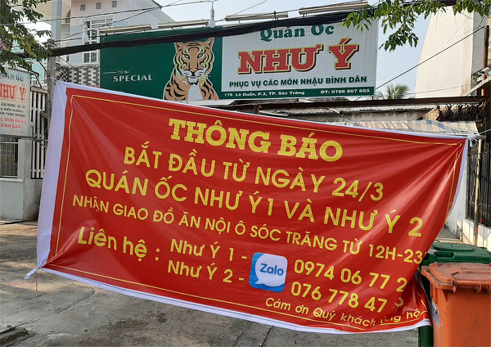 Cơ sở kinh doanh ăn uống tạm ngừng hoạt động, nhận giao hàng tại nhà. Ảnh: XC