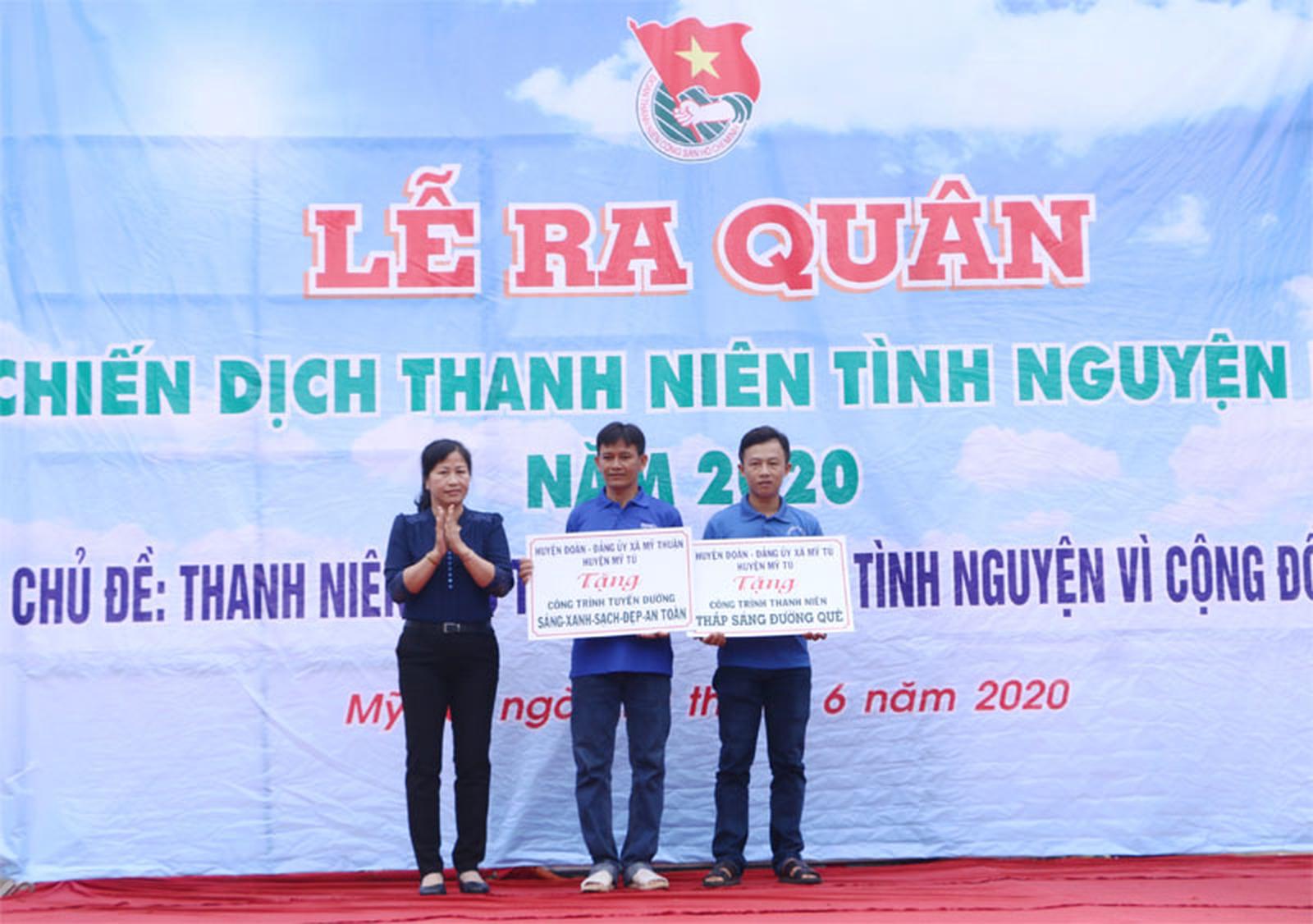 Trao tượng trưng công trình thanh niên trên tại xã Mỹ Thuận, huyện Mỹ Tú. Ảnh: XC