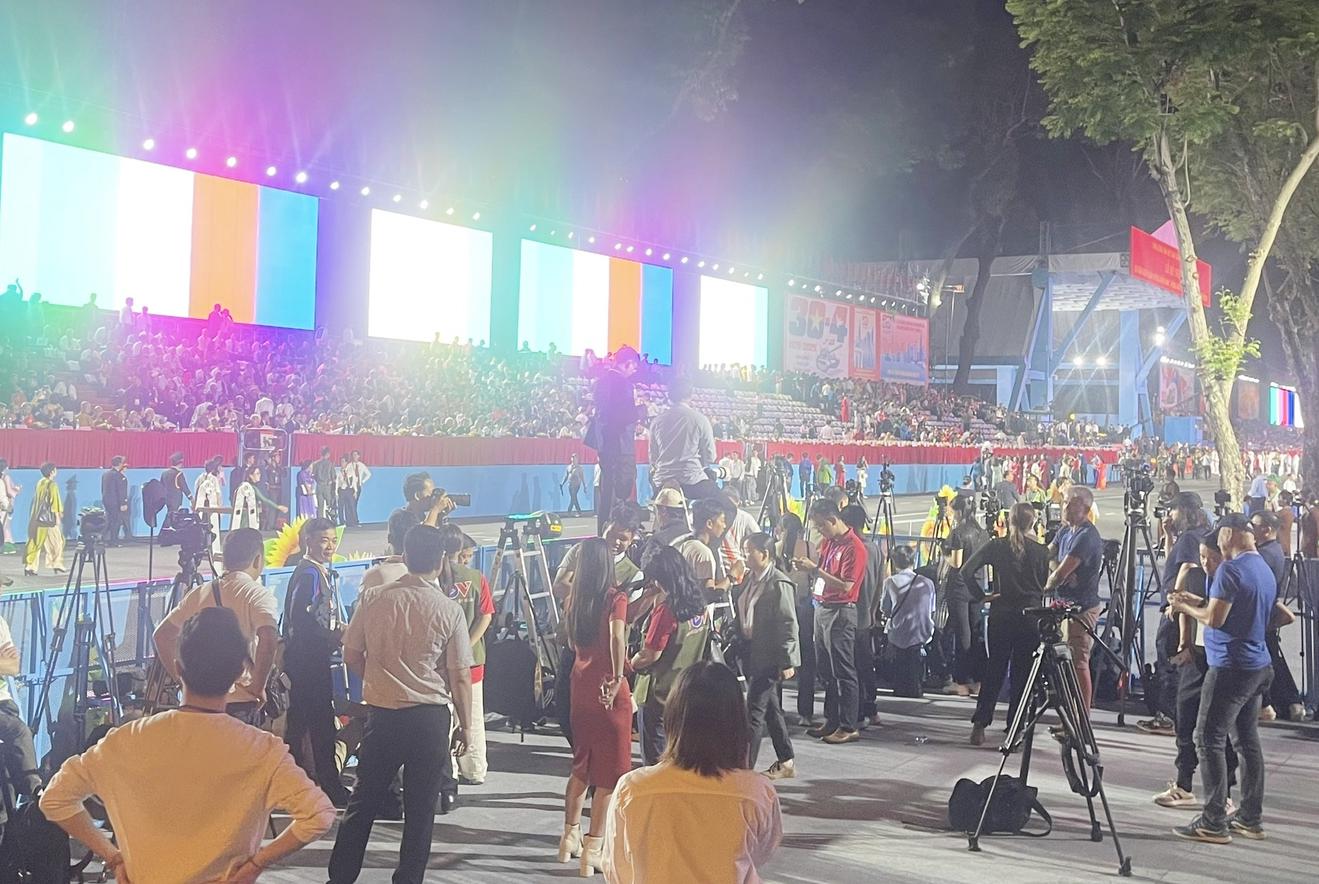 Gần 800 phóng viên báo chí tác nghiệp tại Lễ kỷ niệm 50 năm Ngày Giải phóng miền Nam, thống nhất đất nước. Ảnh: Thu Huyền