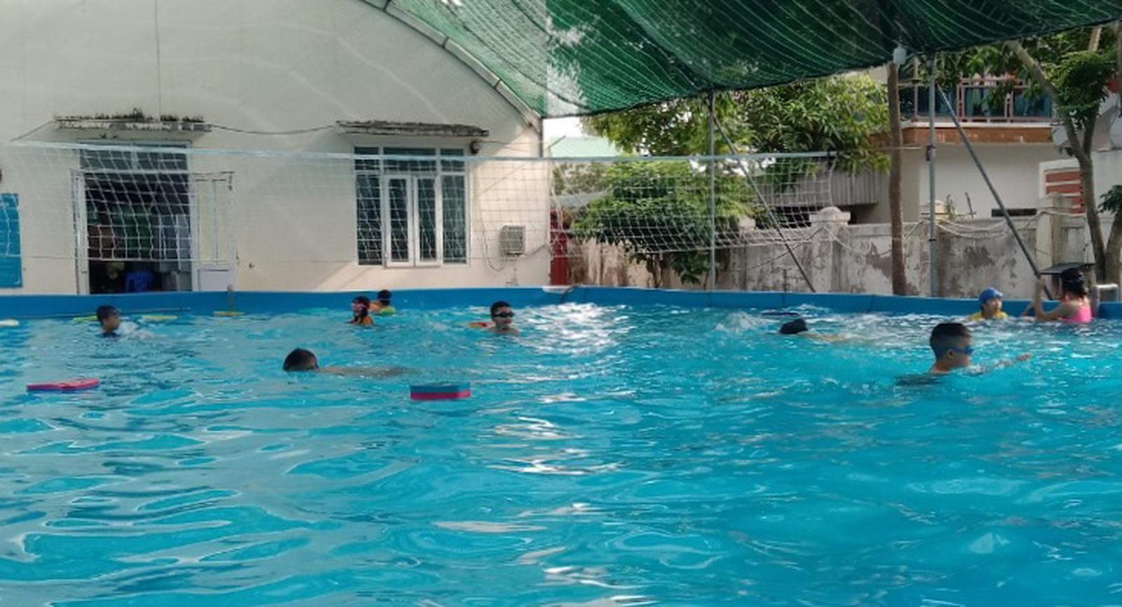 Nghỉ hè nhiều trẻ em được phụ huynh tạo điều kiện cho tham gia các lớp học bơi, kỹ năng phòng chống đuối nước. Ảnh: Xuân Thống