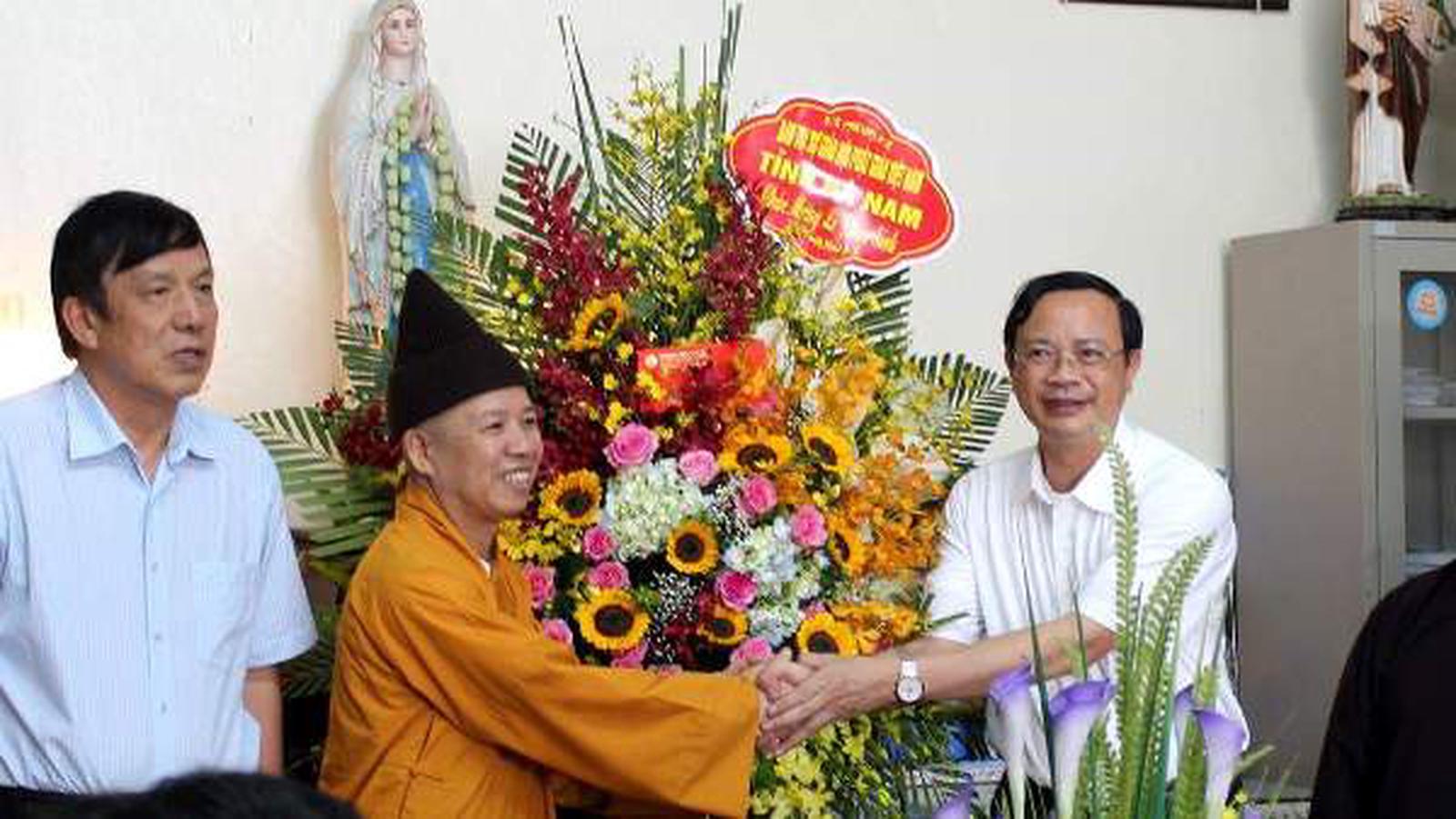 Cùng ngày, Thượng tọa Thích Thanh Quyết đã tới thăm và có lẵng hoa chúc mừng các vị linh mục ở giáo xứ Kim Bảng, giáo xứ Tràng Châu (TP Phủ Lý) và giáo xứ An Phú, xã Thanh Hương, huyện Thanh Liêm nhân dịp Lễ Phục sinh năm 2019.