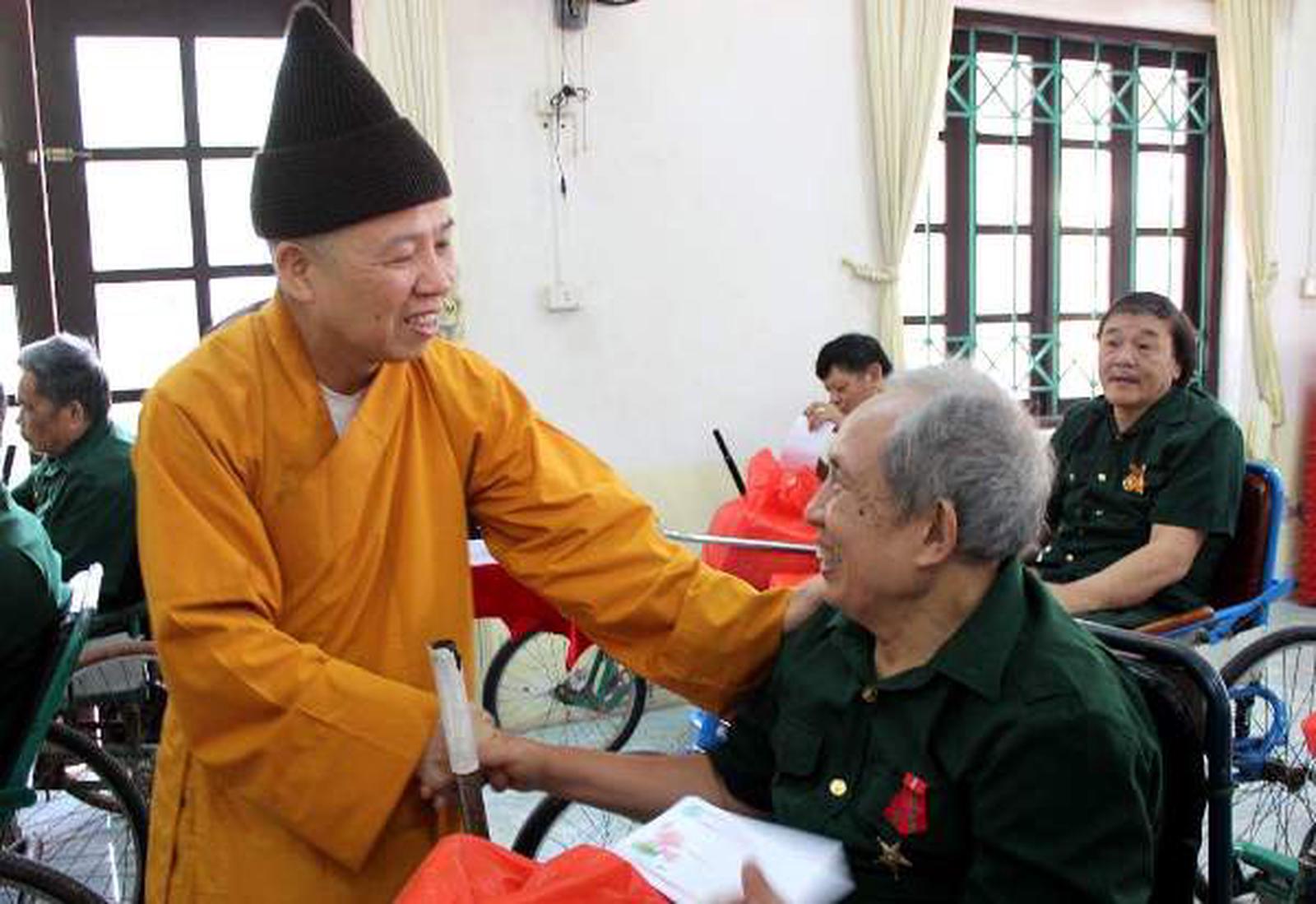 Thượng tọa Thích Thanh Quyết tặng quà cho thương binh năng tại Trung tâm điều dưỡng thương binh Duy Tiên